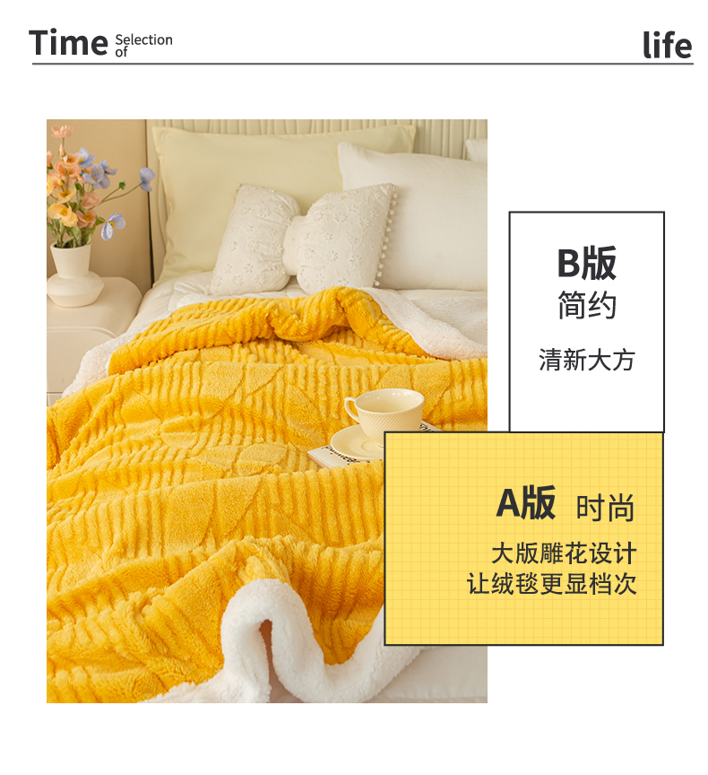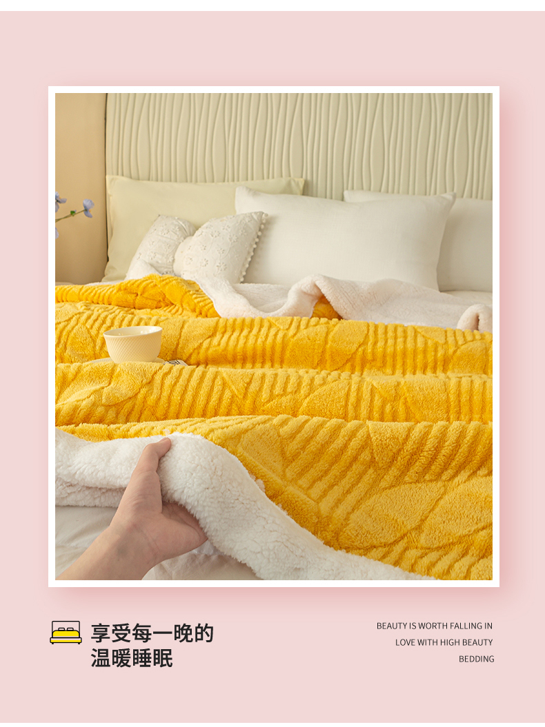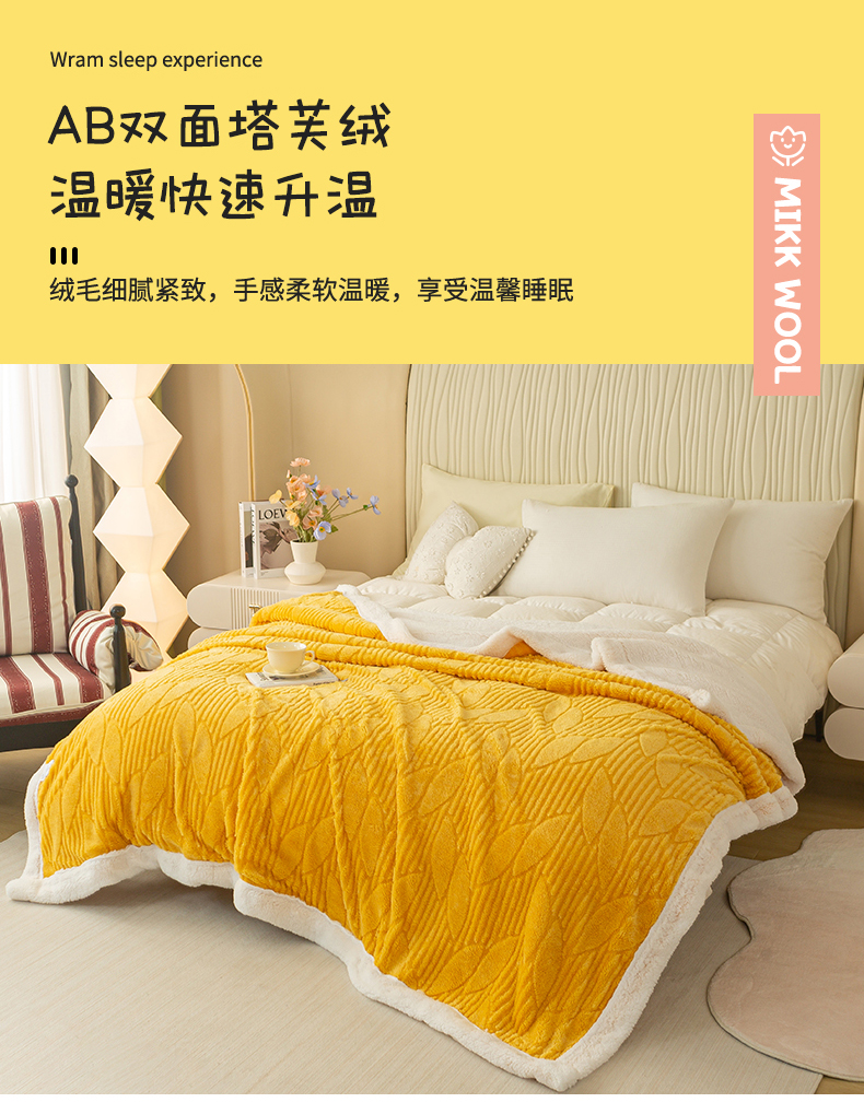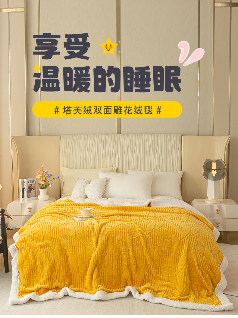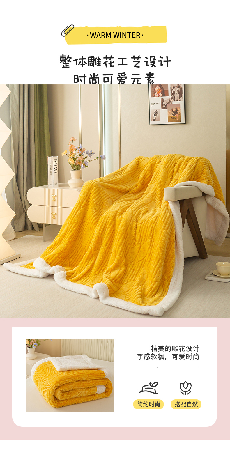 当前位置: 91家纺网 > 商品网购 > 毛毯休闲毯绒毯 > 毛毯 > 佳居缘 【双面绒-叶子】 2025加厚保暖羊羔绒毛毯双层塔芙绒毯子跨境专供外贸出口定制 叶子-黄
