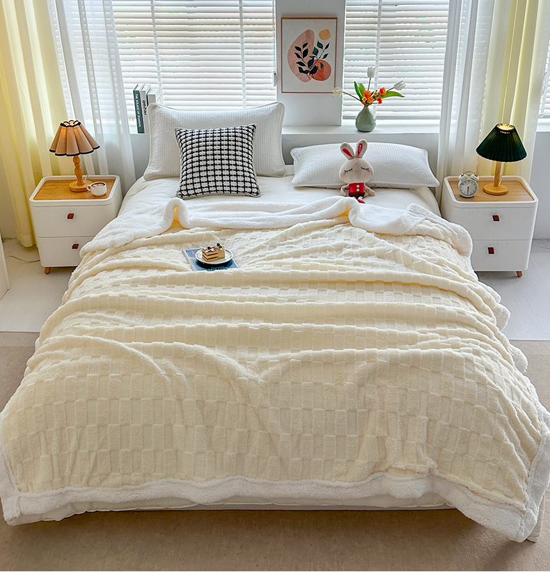当前位置: 91家纺网 > 商品网购 > 毛毯休闲毯绒毯 > 毛毯 > 佳居缘 【双面绒-方格】 2025加厚保暖羊羔绒毛毯双层塔芙绒毯子跨境专供外贸出口定制 方格-米白