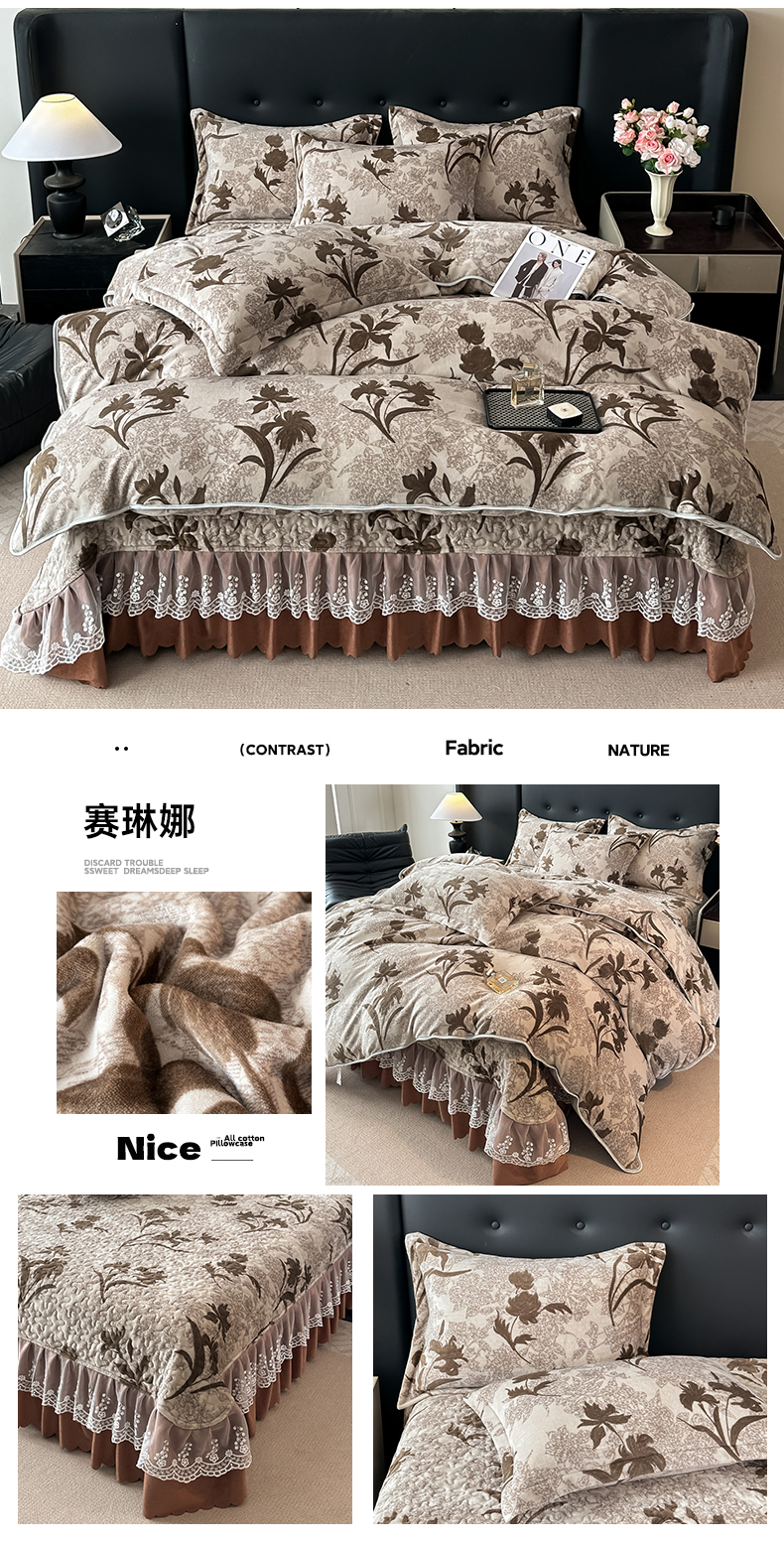 商品名称:凤杰家纺 2025新款加厚牛奶绒床盖四件套 赛琳娜