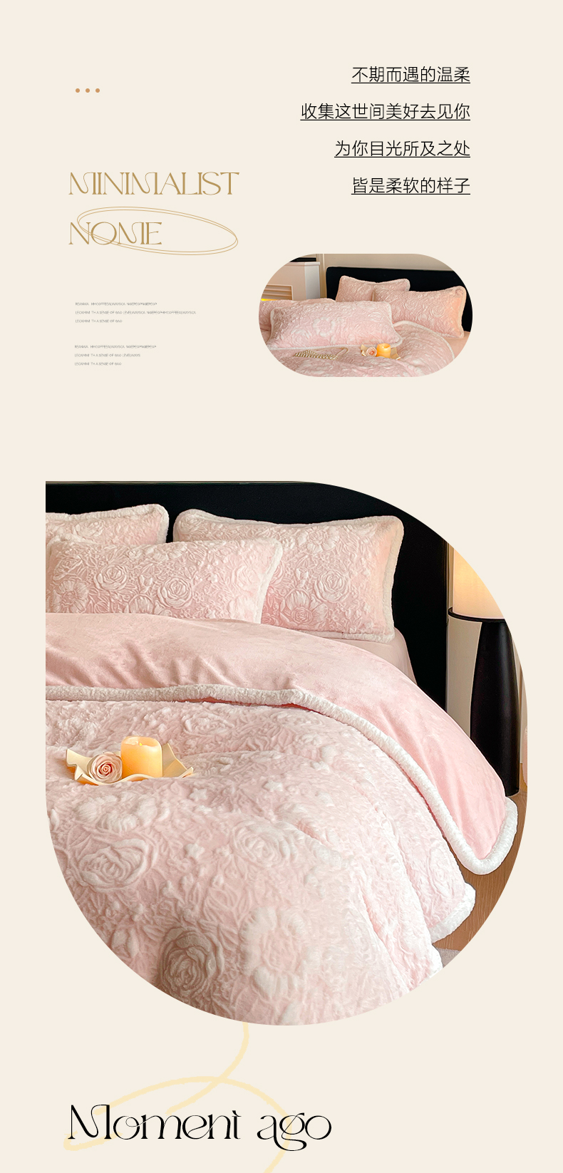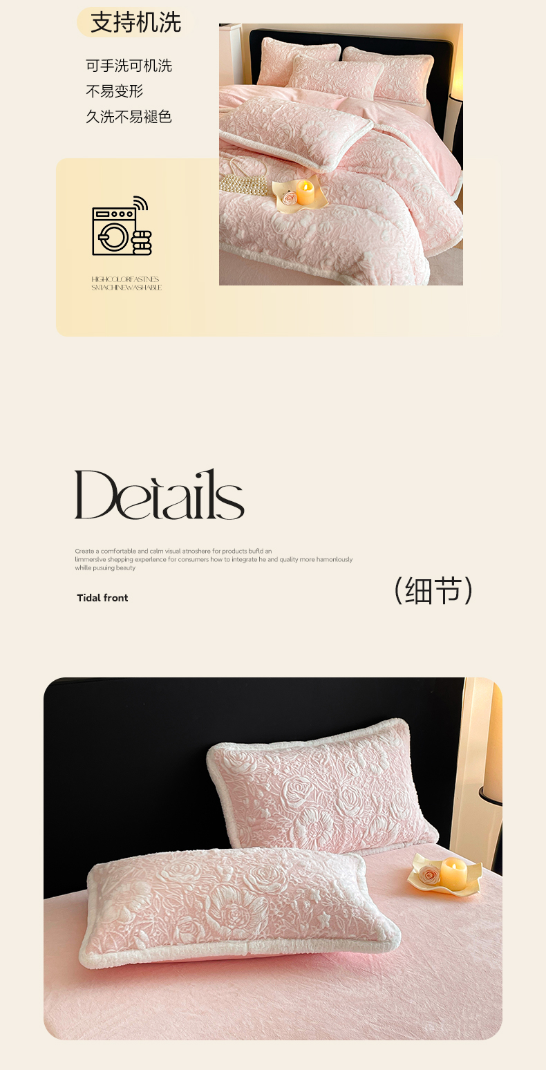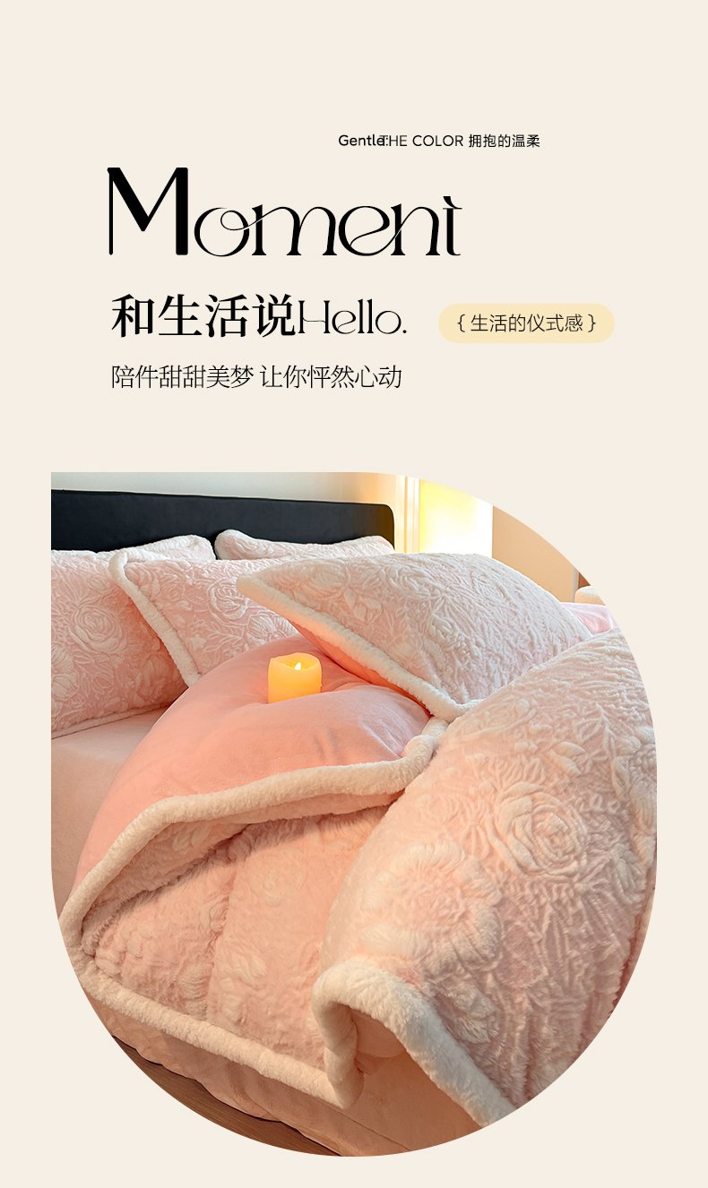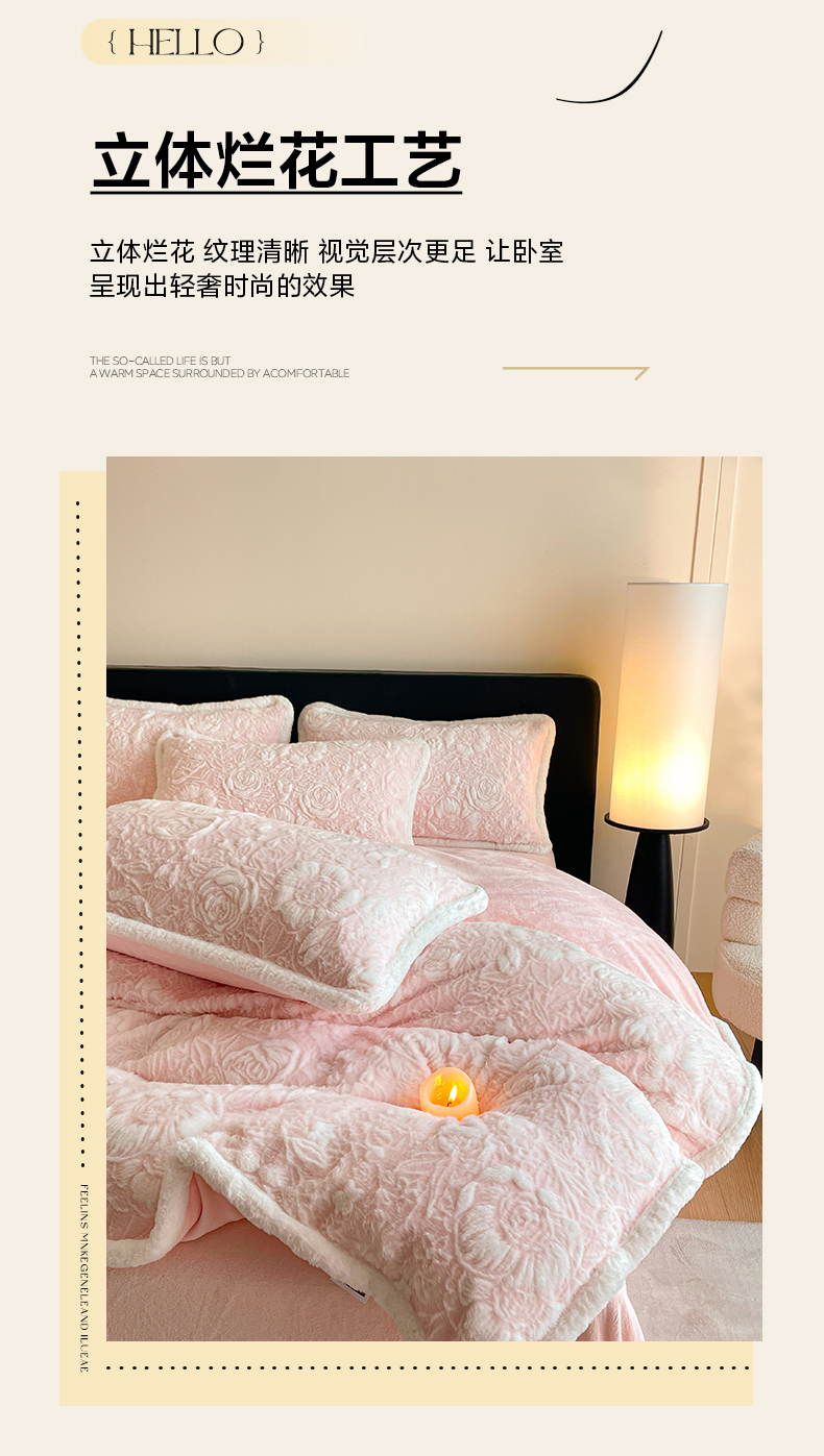 商品名称:民新家纺 2025新款立体烂花兔毛包边款四件套 经典玫瑰-樱花粉