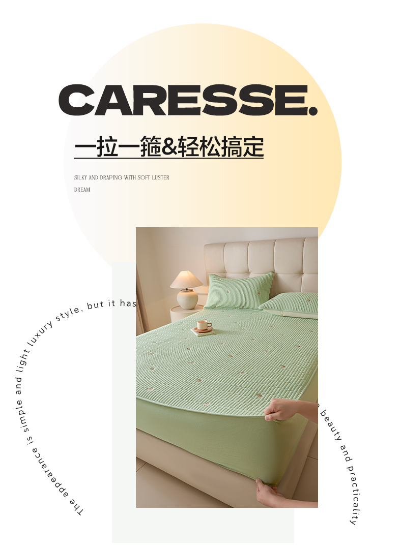 (总)卡伦 2025新款原棉抗菌大豆纤维防水夹棉床笠,白色,淡粉,果绿,卡其,水蓝,星灰