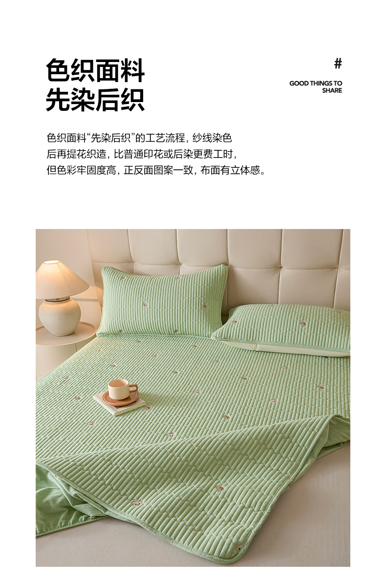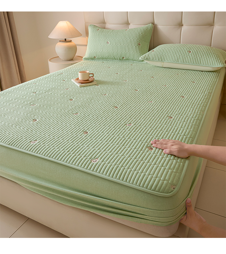 (总)卡伦家纺 2025新品全棉色织水洗棉刺绣夹棉床笠席梦思保护套小熊系列
