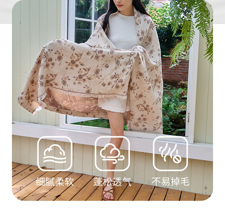 商品名称:沐瑟家纺 2025新款全棉流苏纱布披肩毯空调毯多功能午休毯牛角披肩毯民宿风 柚屿