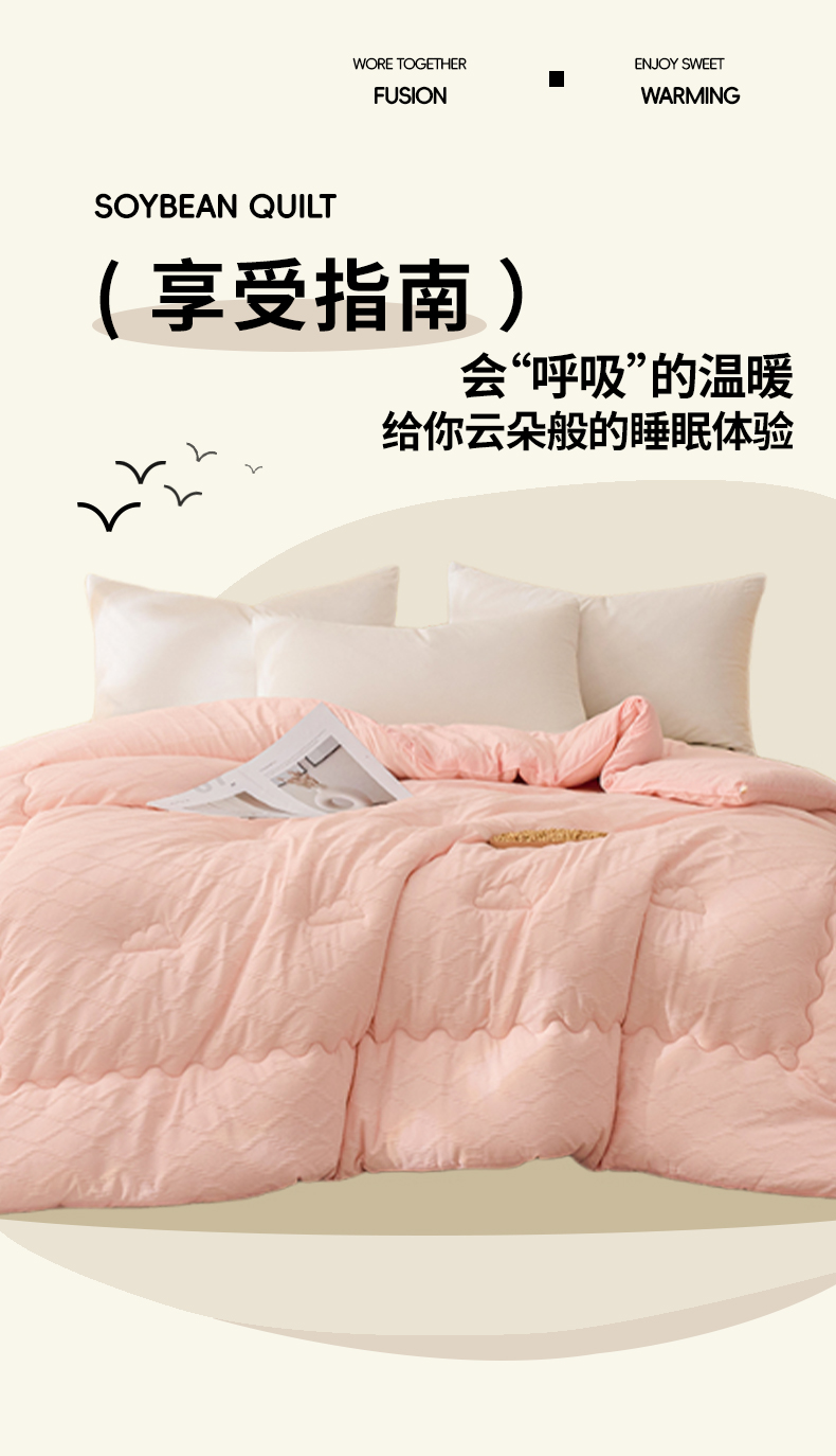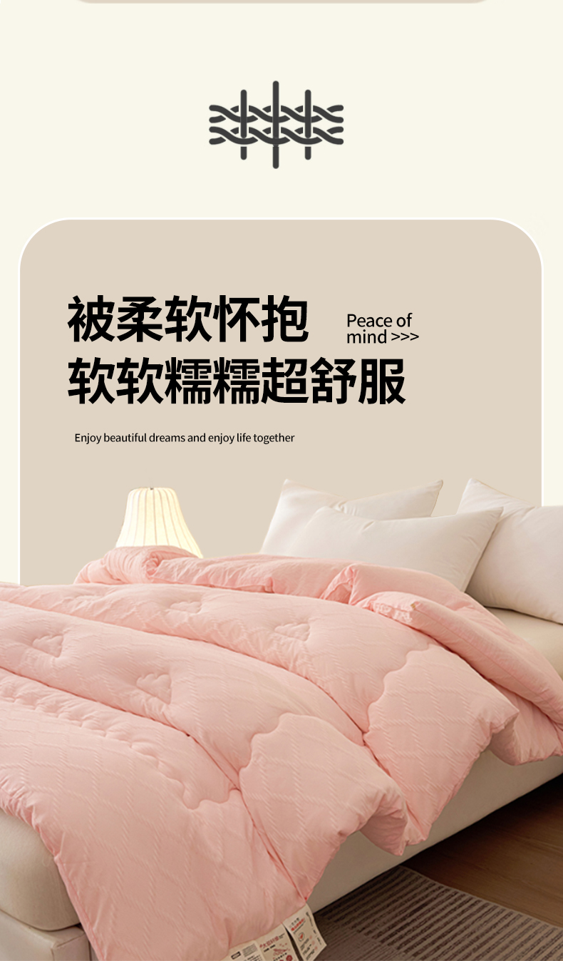当前位置: 91家纺网 > 商品网购 > 被子 > 冬被 > 爱彼家纺 2025新款直播热卖A类菱形格提花大豆被春秋被冬被 菱形提花大豆被-玉粉