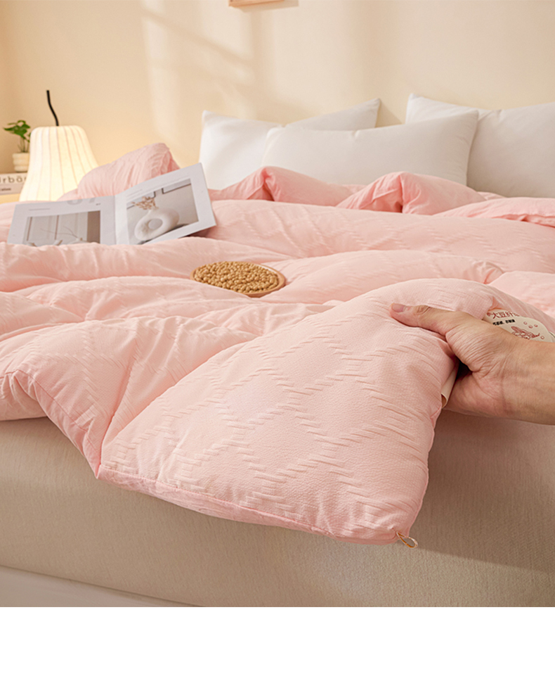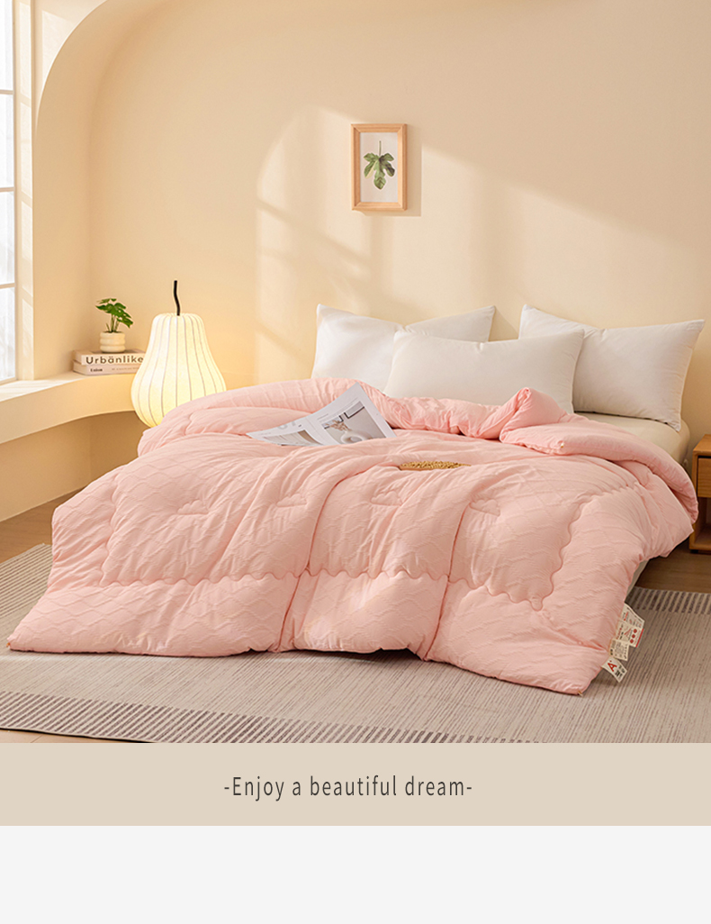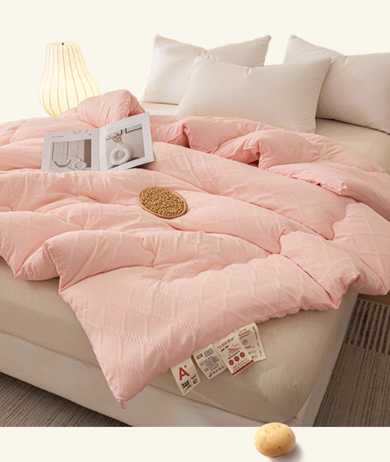 • 91家纺网 家纺一手货源 找家纺 爱彼家纺 2025新款直播热卖A类菱形格提花大豆被春秋被冬被 菱形提花大豆被-玉粉