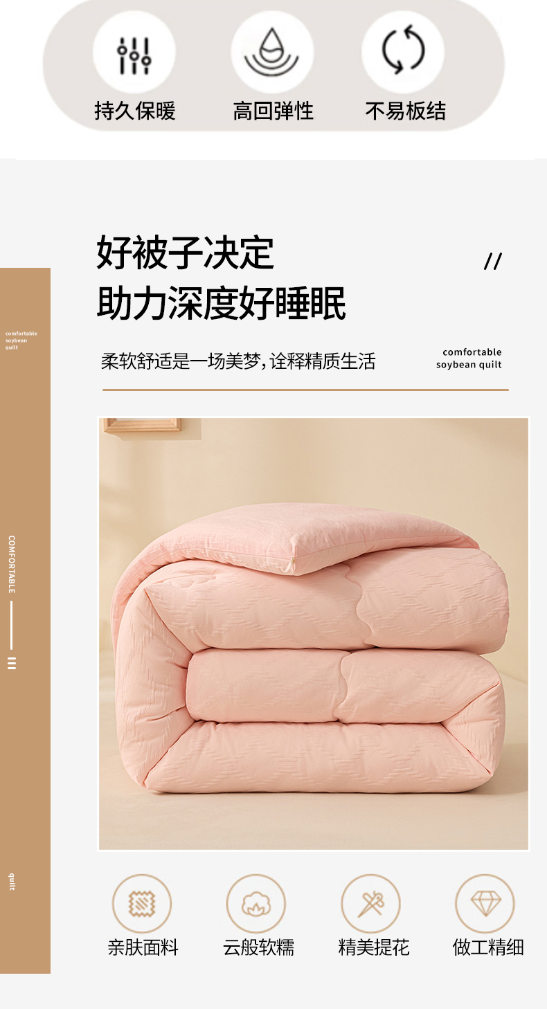 爱彼家纺 2025新款直播热卖A类菱形格提花大豆被春秋被冬被 菱形提花大豆被-玉粉