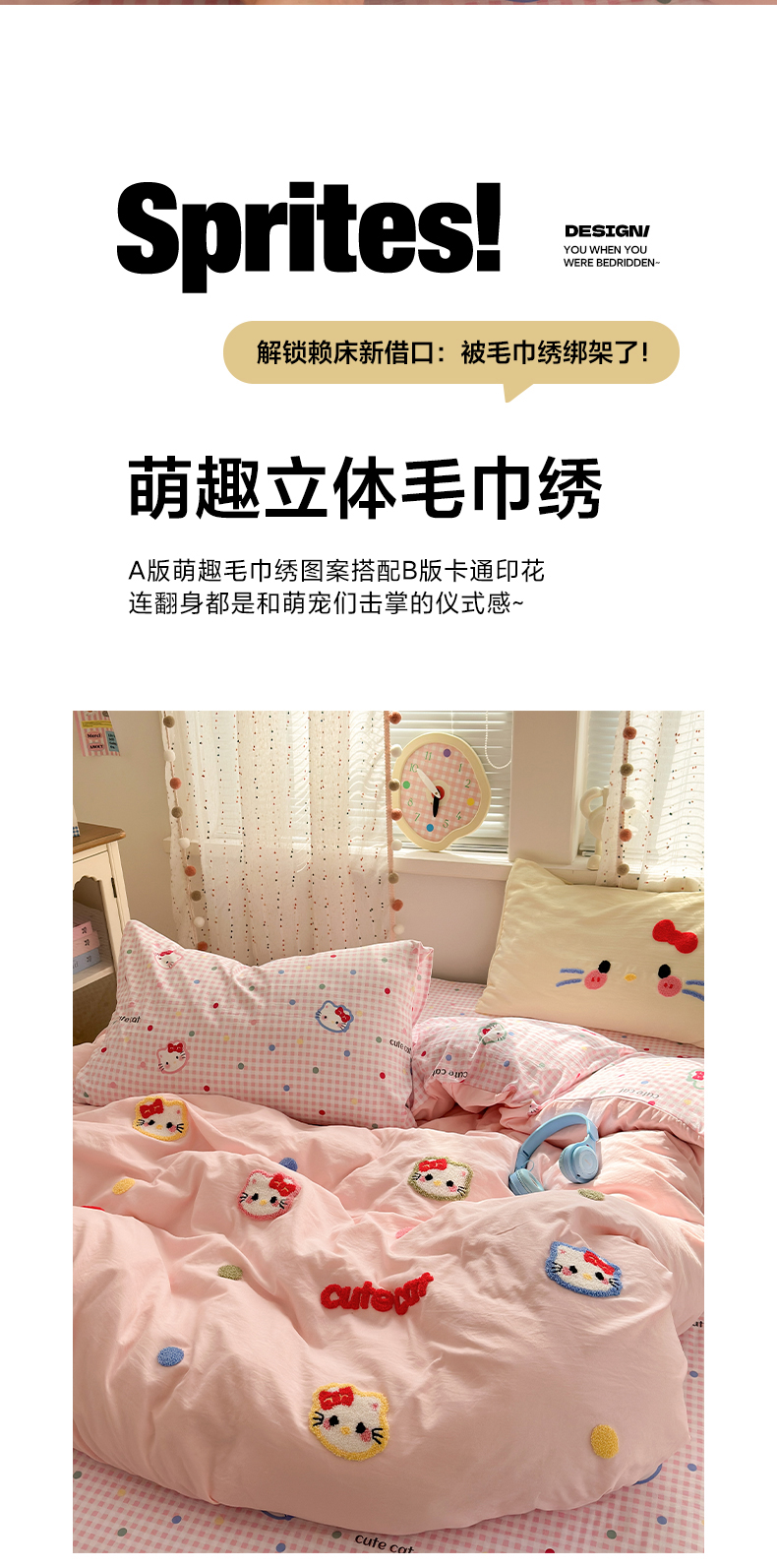 当前位置: 91家纺网 > 商品网购 > 床品套件 > 四件套 > 毛巾绣四件套 > 卡迪熊家纺 2025新款水洗棉毛巾绣可爱猫咪系列 晚安喵-粉