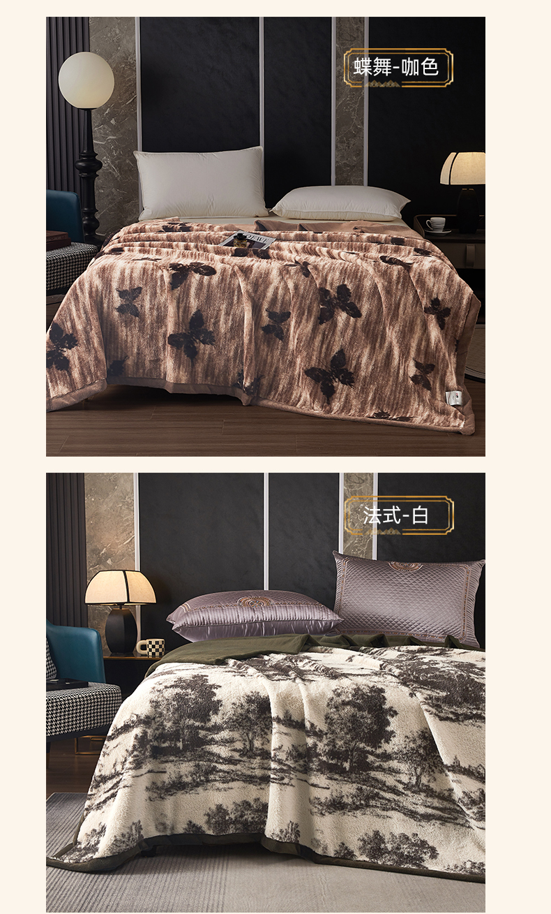 2025新款仿水貂绒兔毛绒雪棉绒云貂绒拉舍尔双层复合毛毯子 美拉德-蝶舞咖