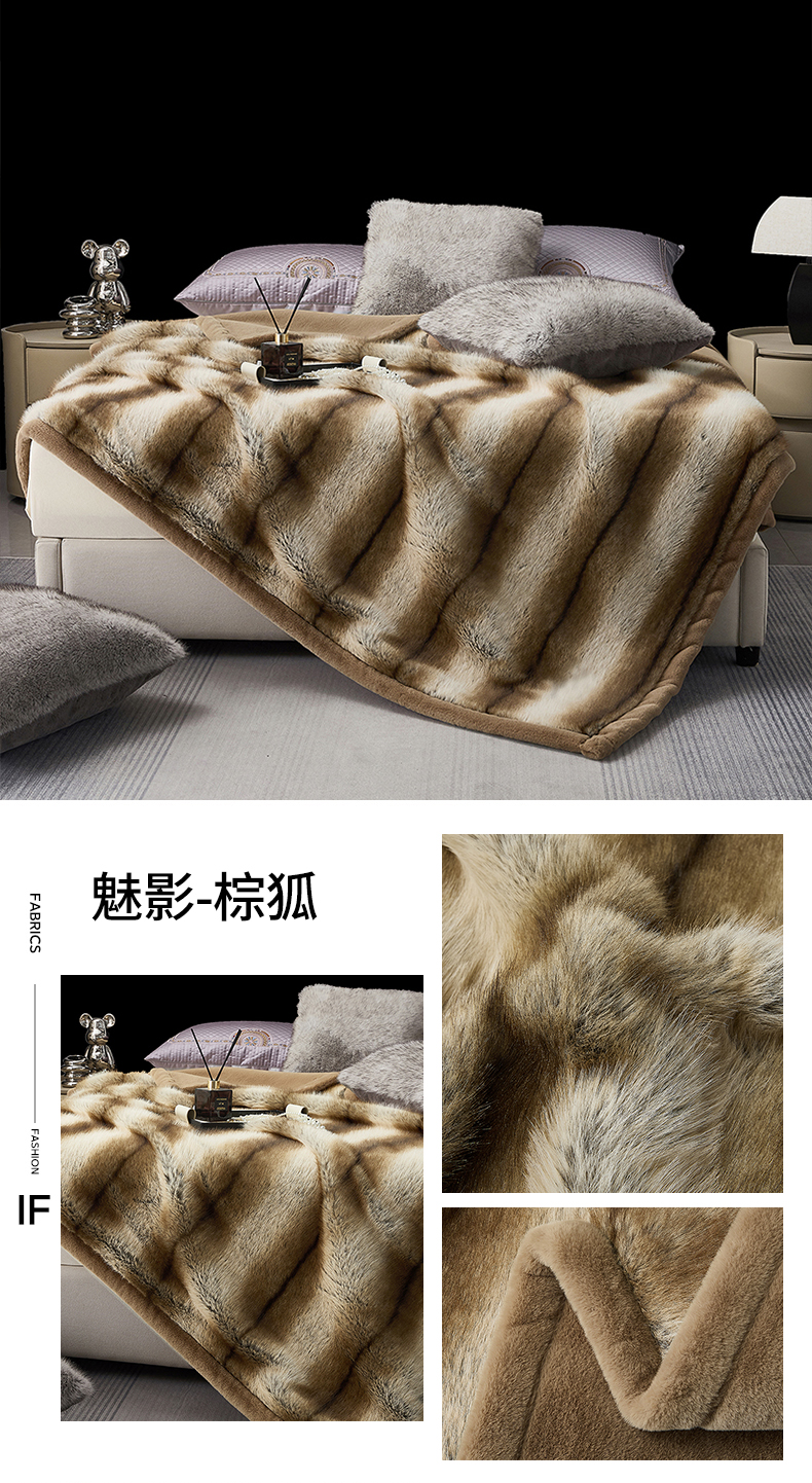 商品名称: 2025冬季新款床上用野兽派毛毯被子午休毯结婚用双人婚庆拉舍尔毛毯子 魅影-灰狐