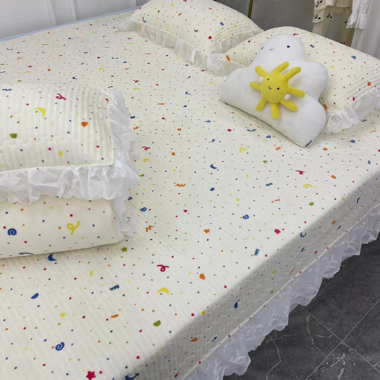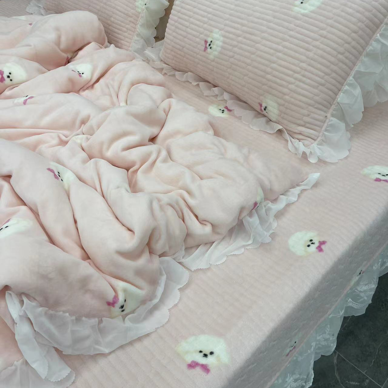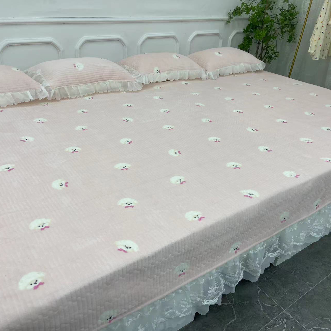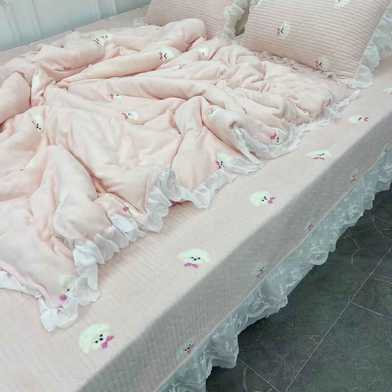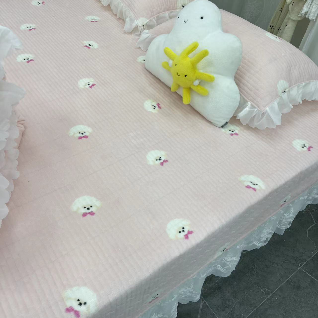 (总)禧瑞谷 2025新款冬季牛奶绒双层蕾丝花边床盖三件套床盖四件套,点点蝴蝶结,粉底小狗,蓝底小狗,奶油小狗,星月小确幸,KT猫,蝶舞白色,蓝底爱心,洛丽塔蓝,碎花小女孩,波点,草莓蝴蝶结,蓝色蝴蝶结,奶糖少女,蛋糕猫