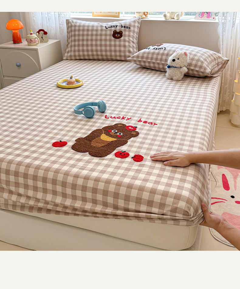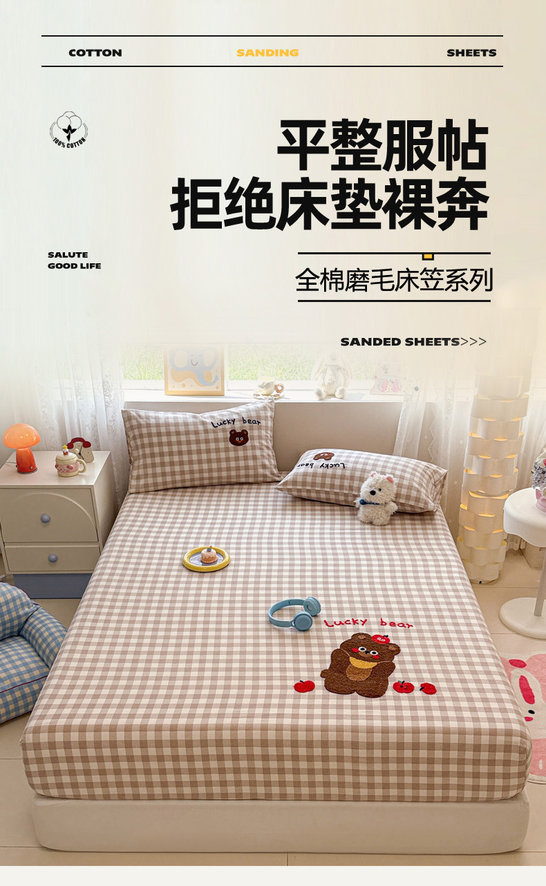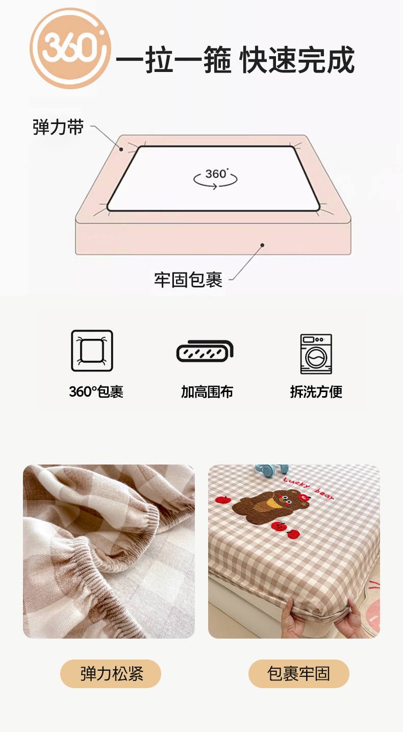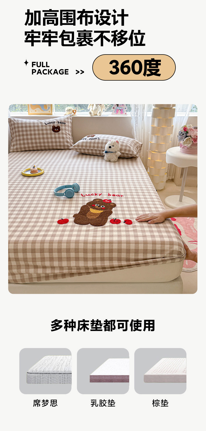 慕尚家纺 2025新款全棉磨毛毛巾绣单床笠 床笠单件 熊熊满满
