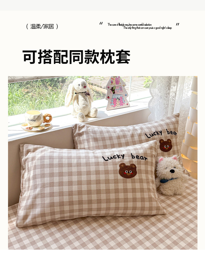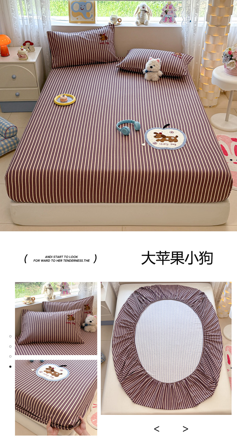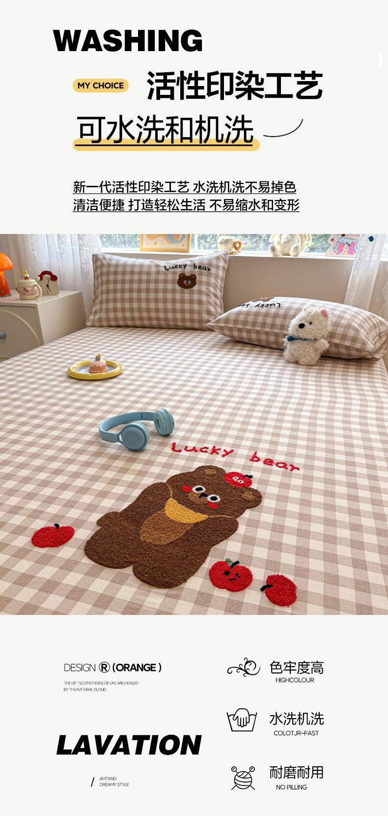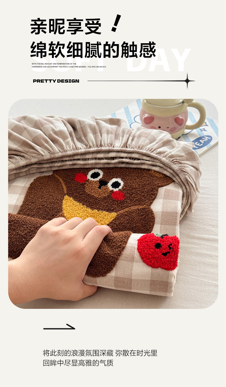 慕尚家纺 2025新款全棉磨毛毛巾绣单床笠 床笠单件 熊熊满满