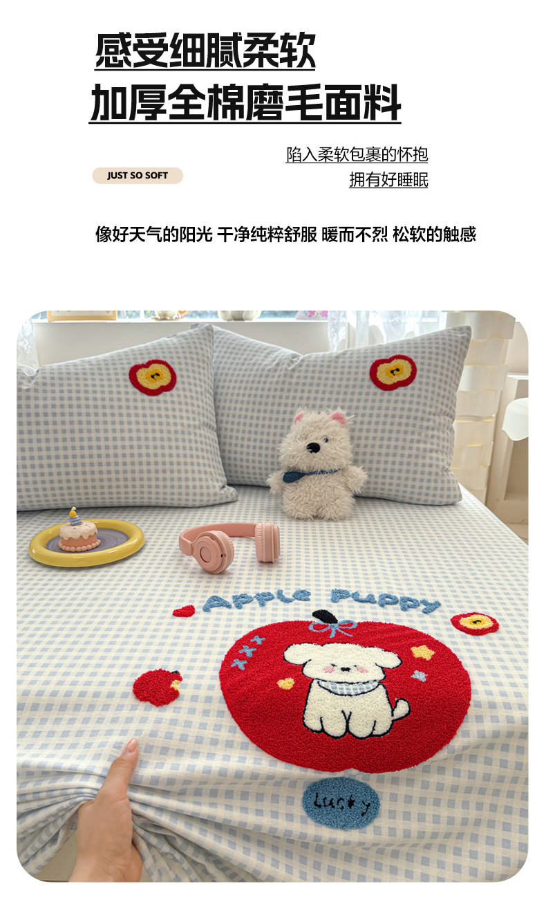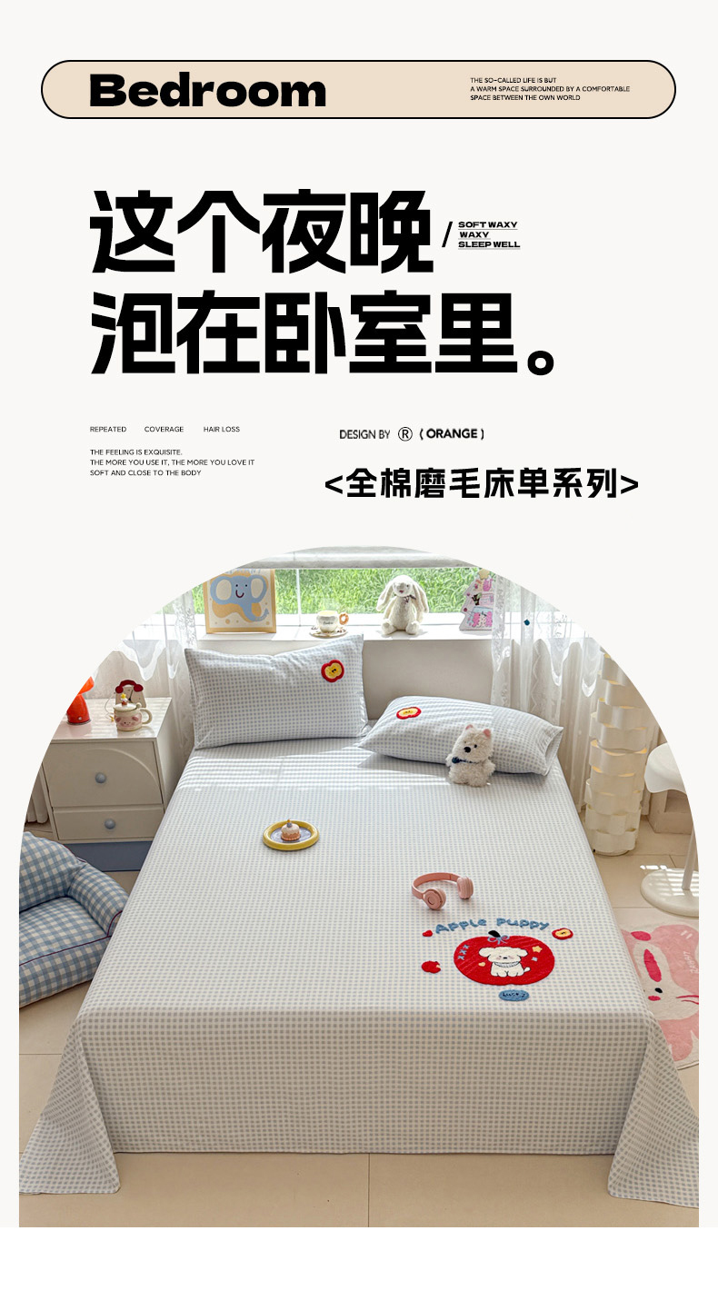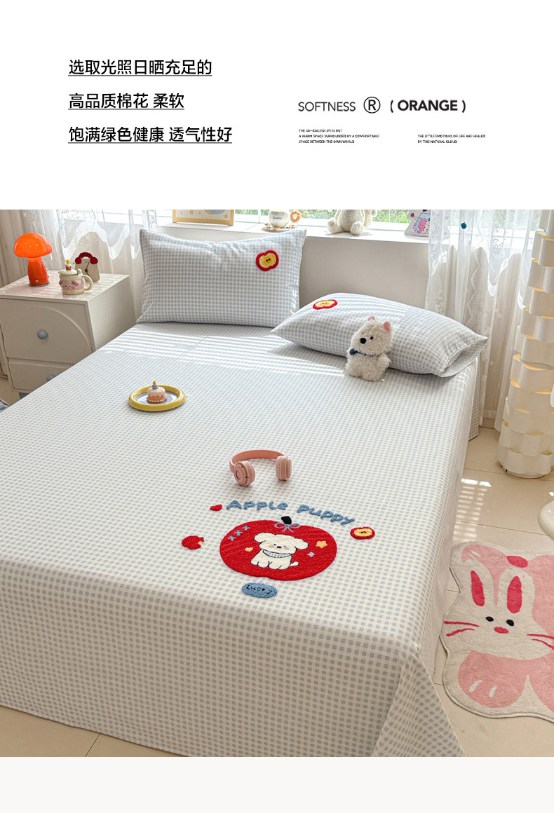 慕尚家纺 2025新款全棉磨毛毛巾绣单床单 床单单件 苹安瑞瑞