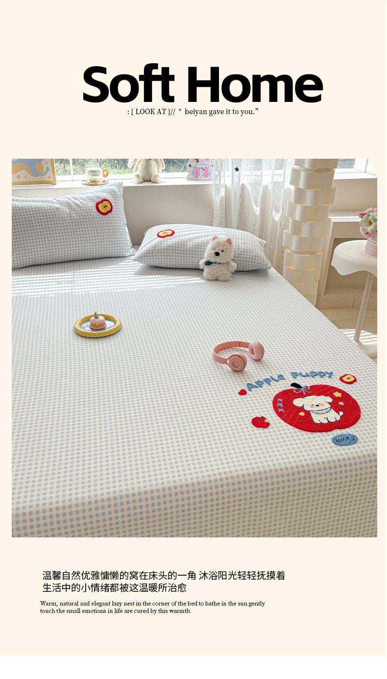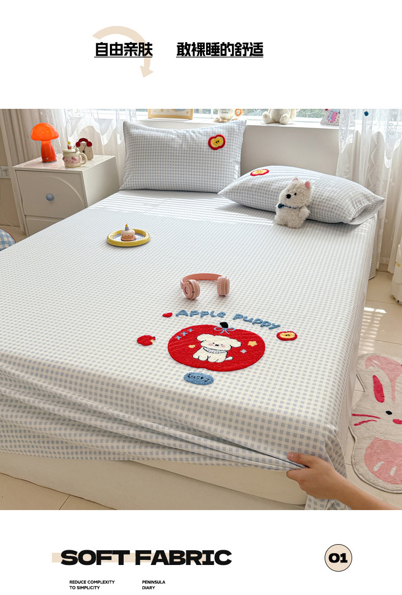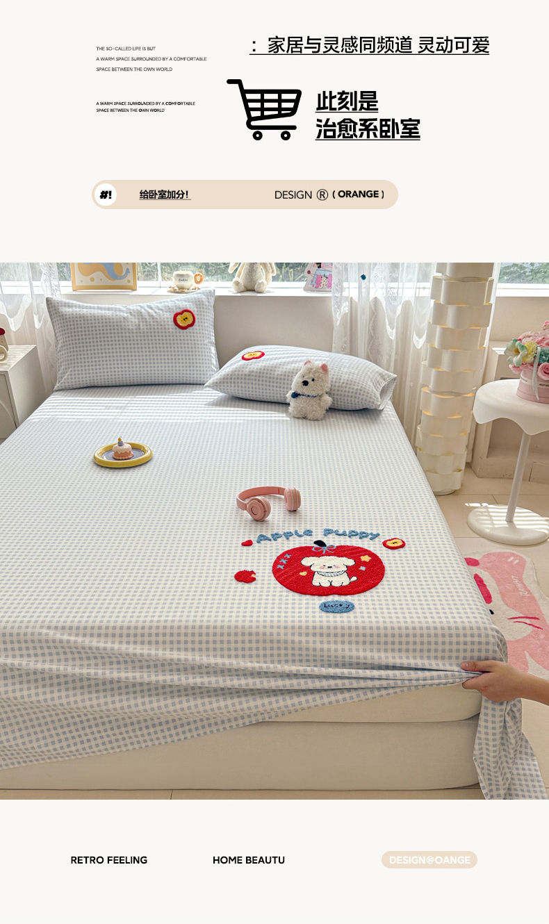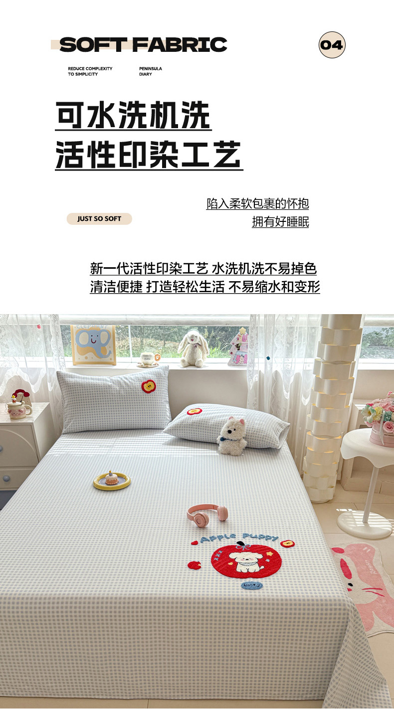 慕尚家纺 2025新款全棉磨毛毛巾绣单床单 床单单件 苹安瑞瑞