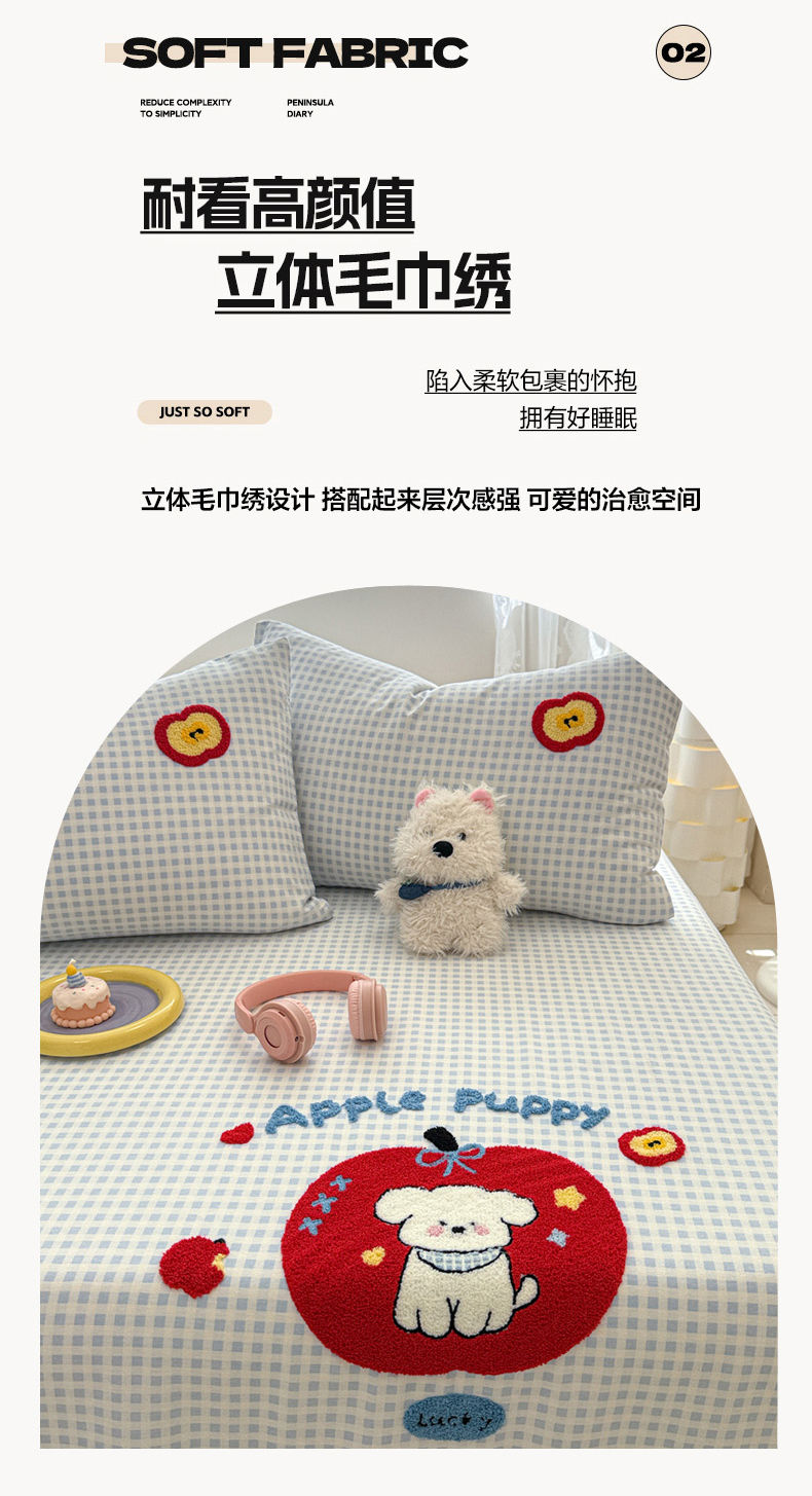 商品名称:慕尚家纺 2025新款全棉磨毛毛巾绣单床单 床单单件 苹安瑞瑞