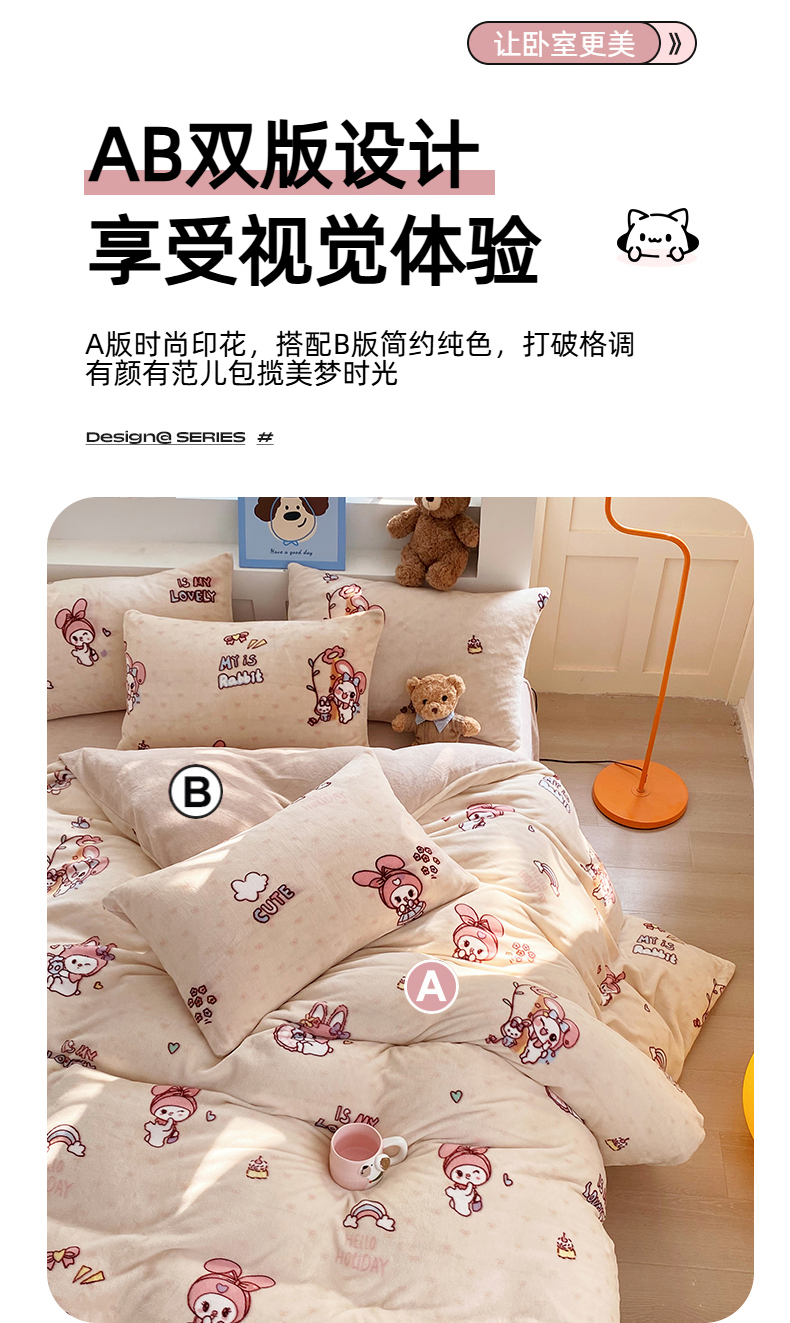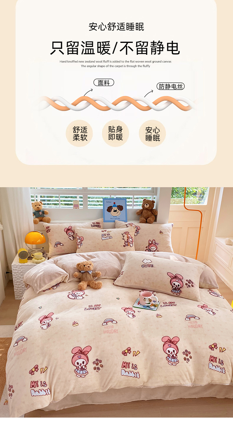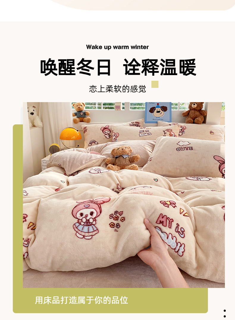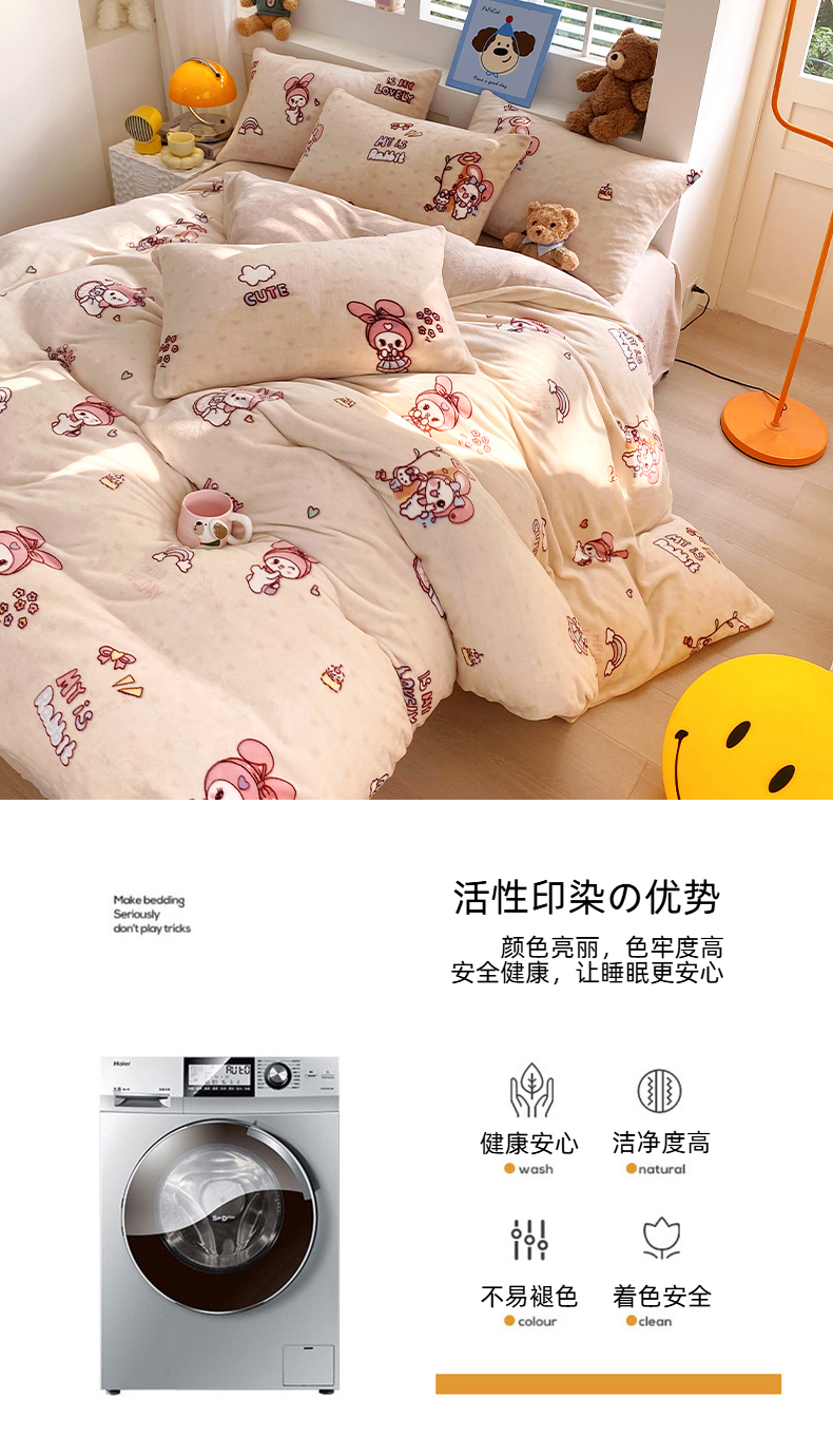 当前位置: 91家纺网 > 商品网购 > 床品套件 > 四件套 > 牛奶绒四件套 > YYDS网供 2025新款ins风牛奶绒四件套萌趣卡通三件套花卉单被套秋冬软fufu防静电 美乐蒂萌