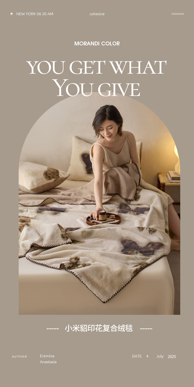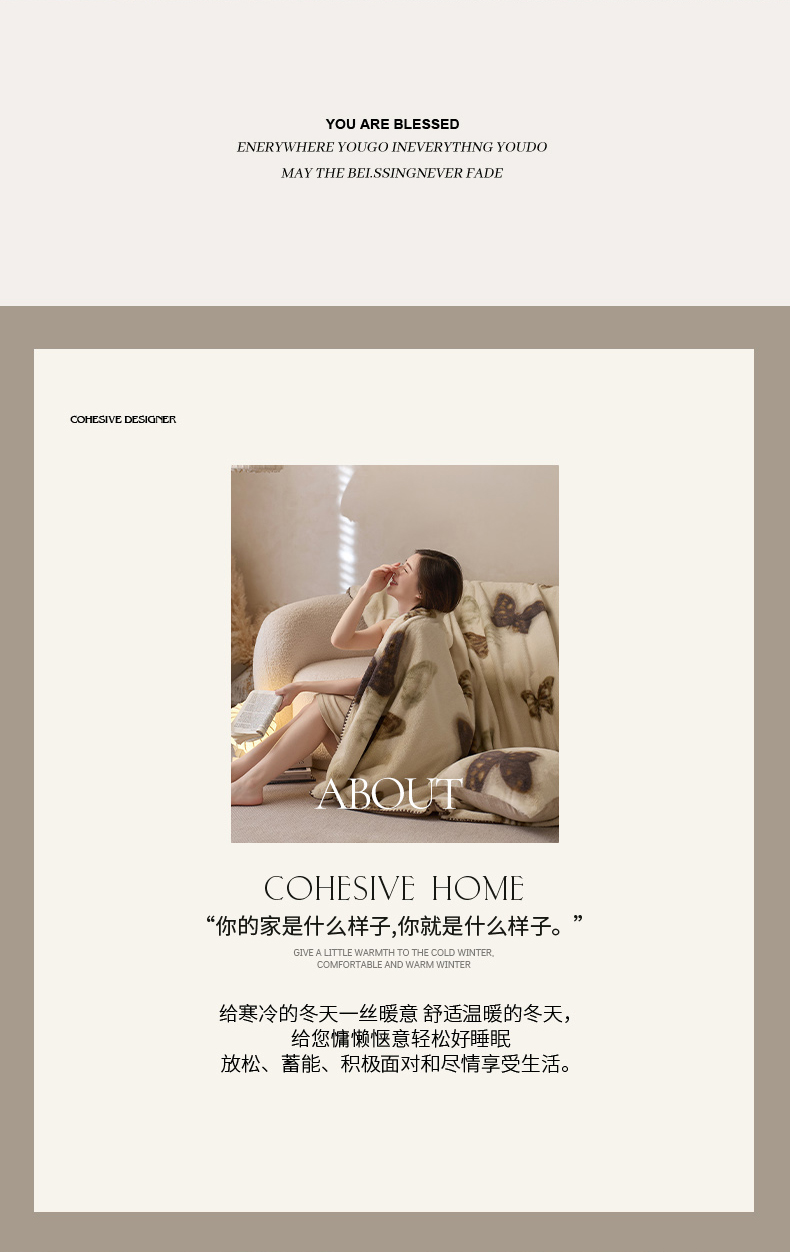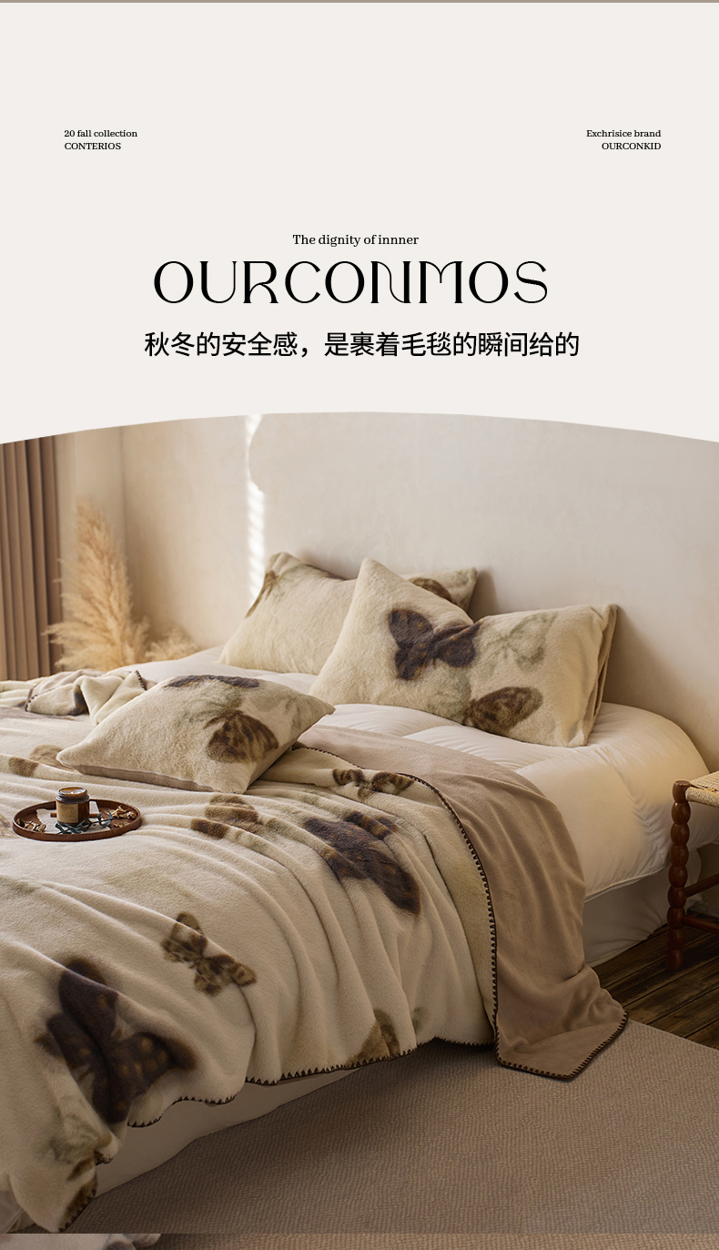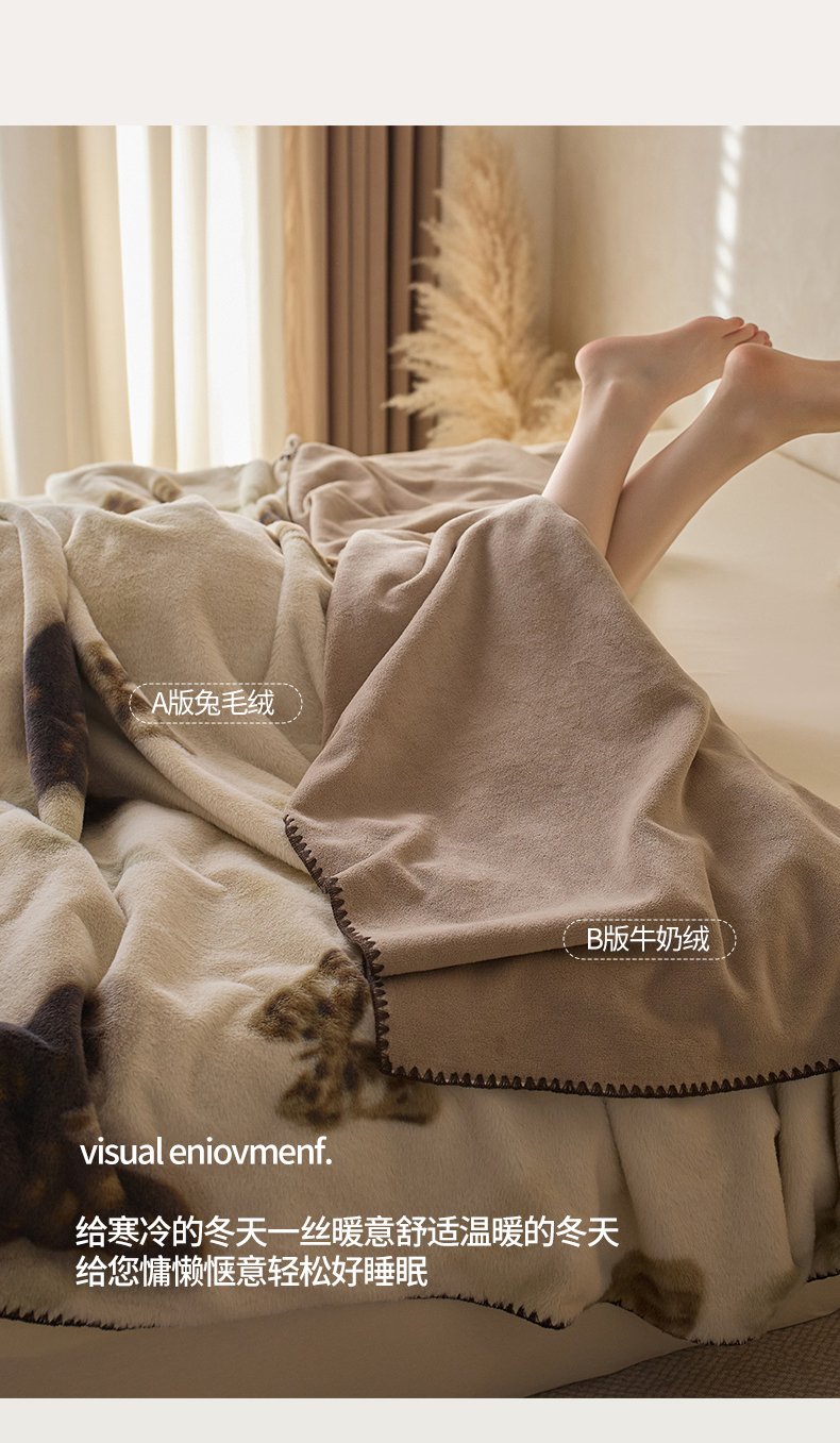 (总)宜代光年 2024新款520g全消光牛奶绒迪奥格盖毯,卡其,米白,柔粉,雾灰