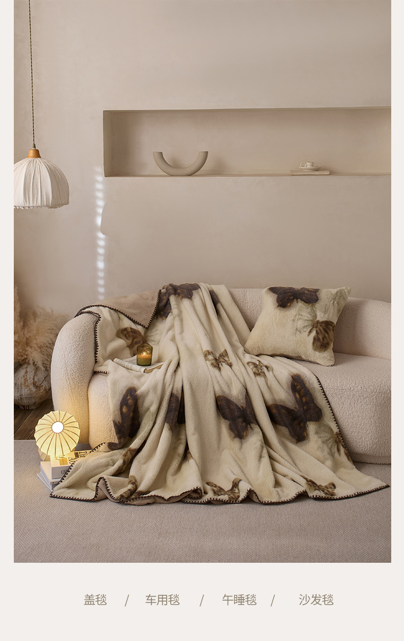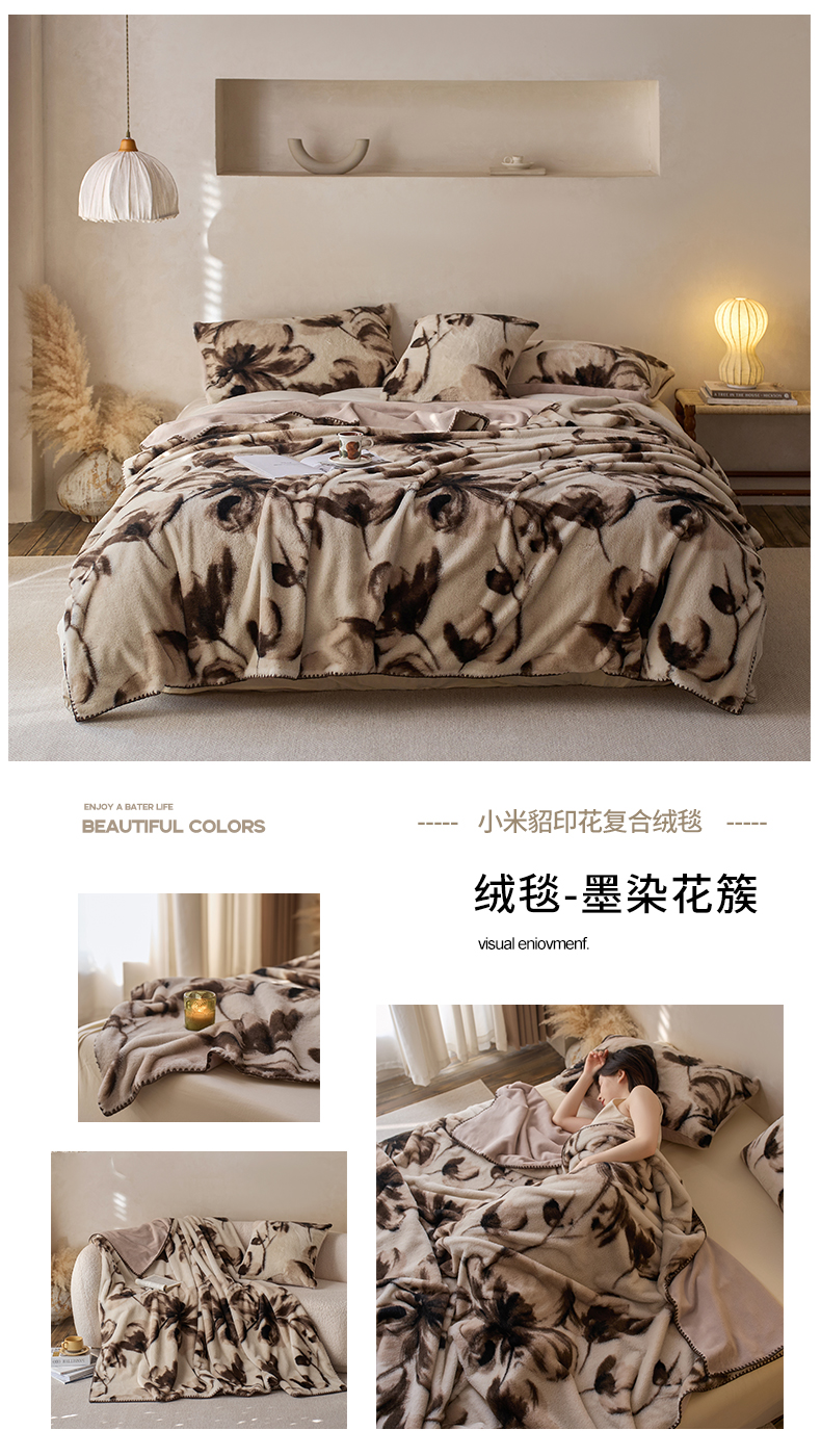 宜代光年 2025新款小米貂印花复合绒毯毯子-系列一 绒毯-墨韵花影