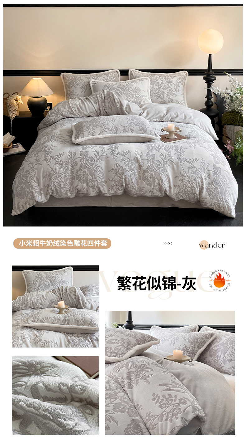 (总)宜代光年 2024新款小米貂牛奶绒雕花四件套,繁花似锦-咖,繁花似锦-灰,繁花似锦-粉,丛林-粉,丛林-咖,繁花似锦-绿,花丛小兔-粉,魔法森林-粉,叶曼-绿