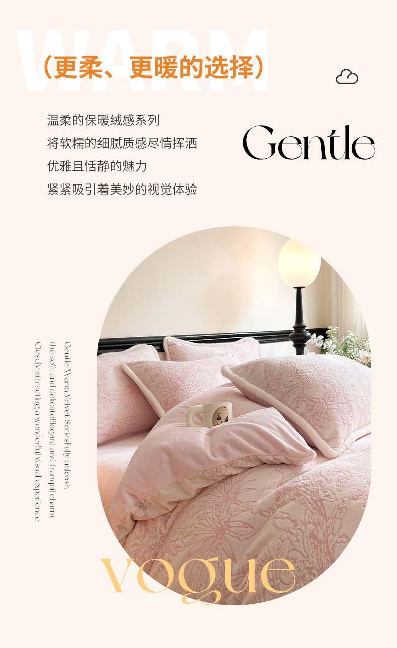 商品名称:宜代光年 2025新款小米貂牛奶绒雕花四件套 花丛小兔-粉