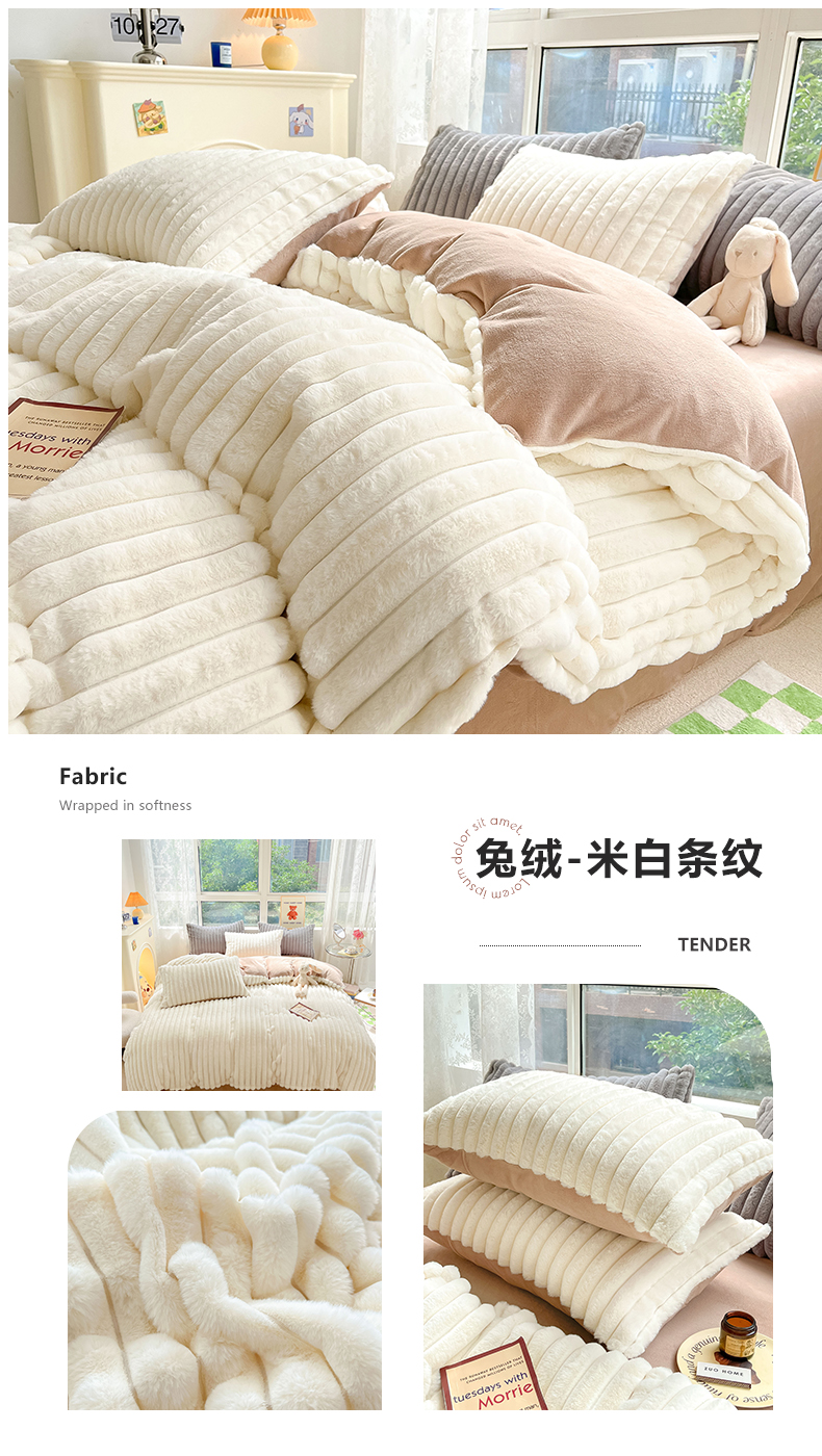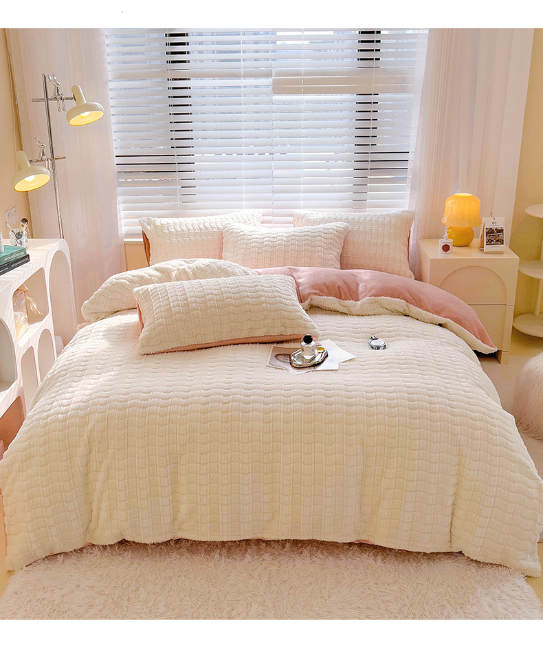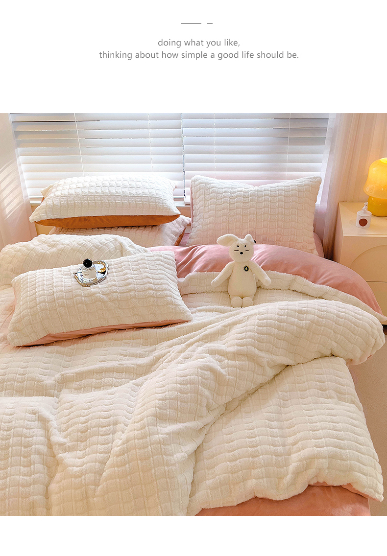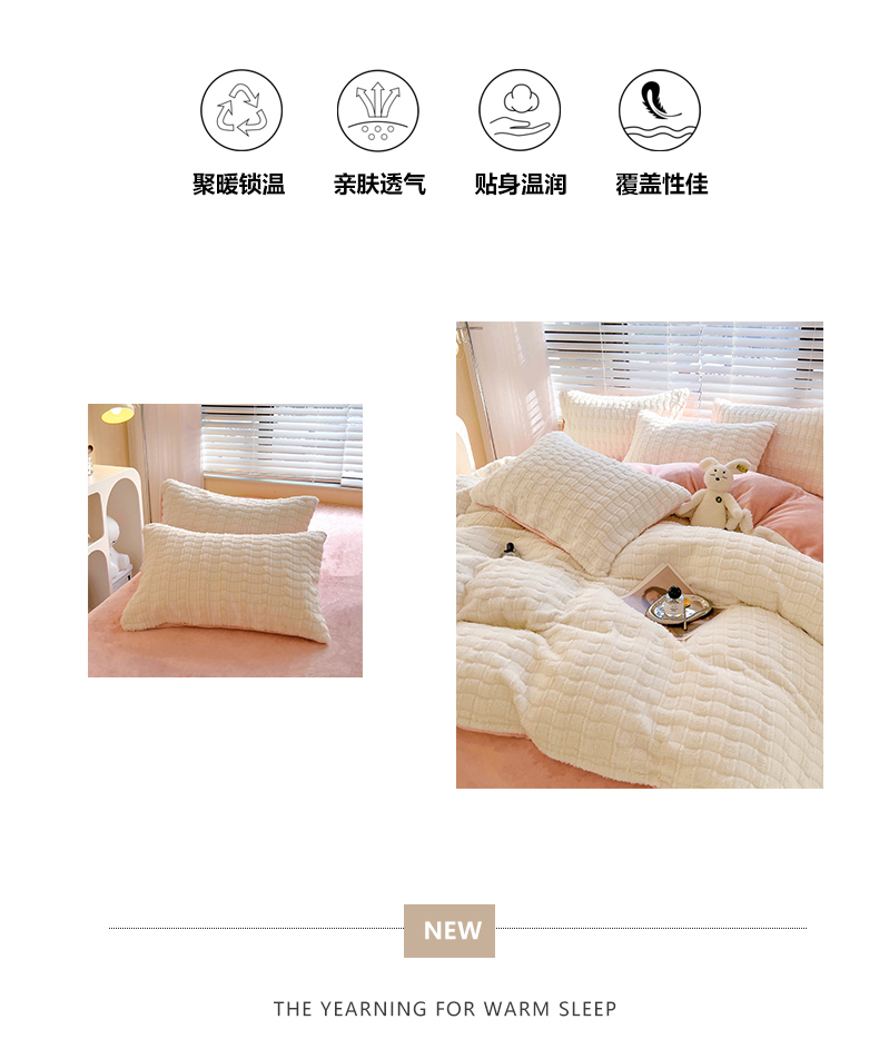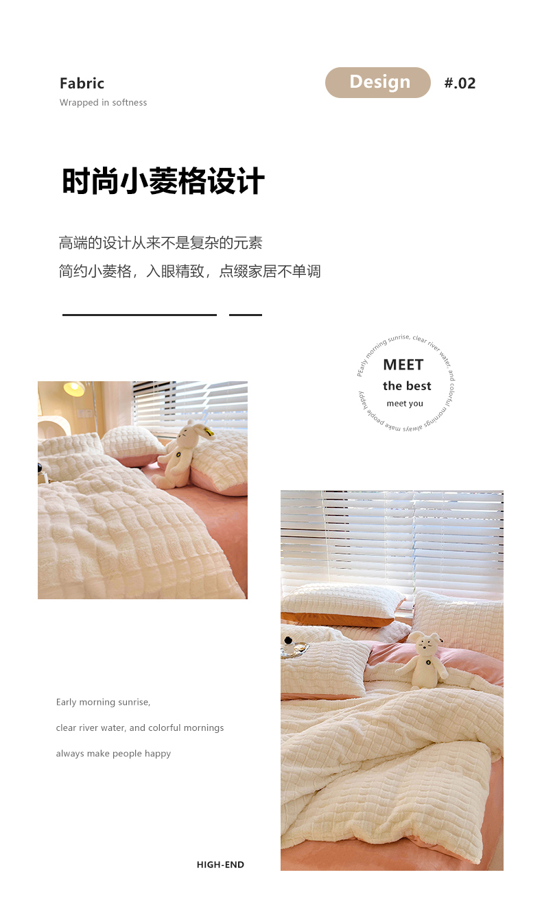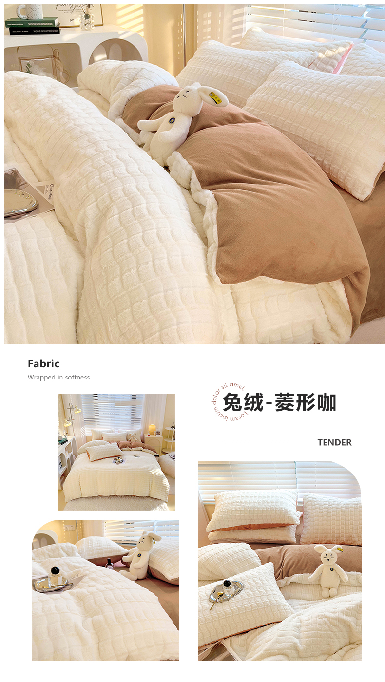 商品名称:宜代光年 2025新款兔毛绒菱格纯色简约四件套 兔绒-菱形咖