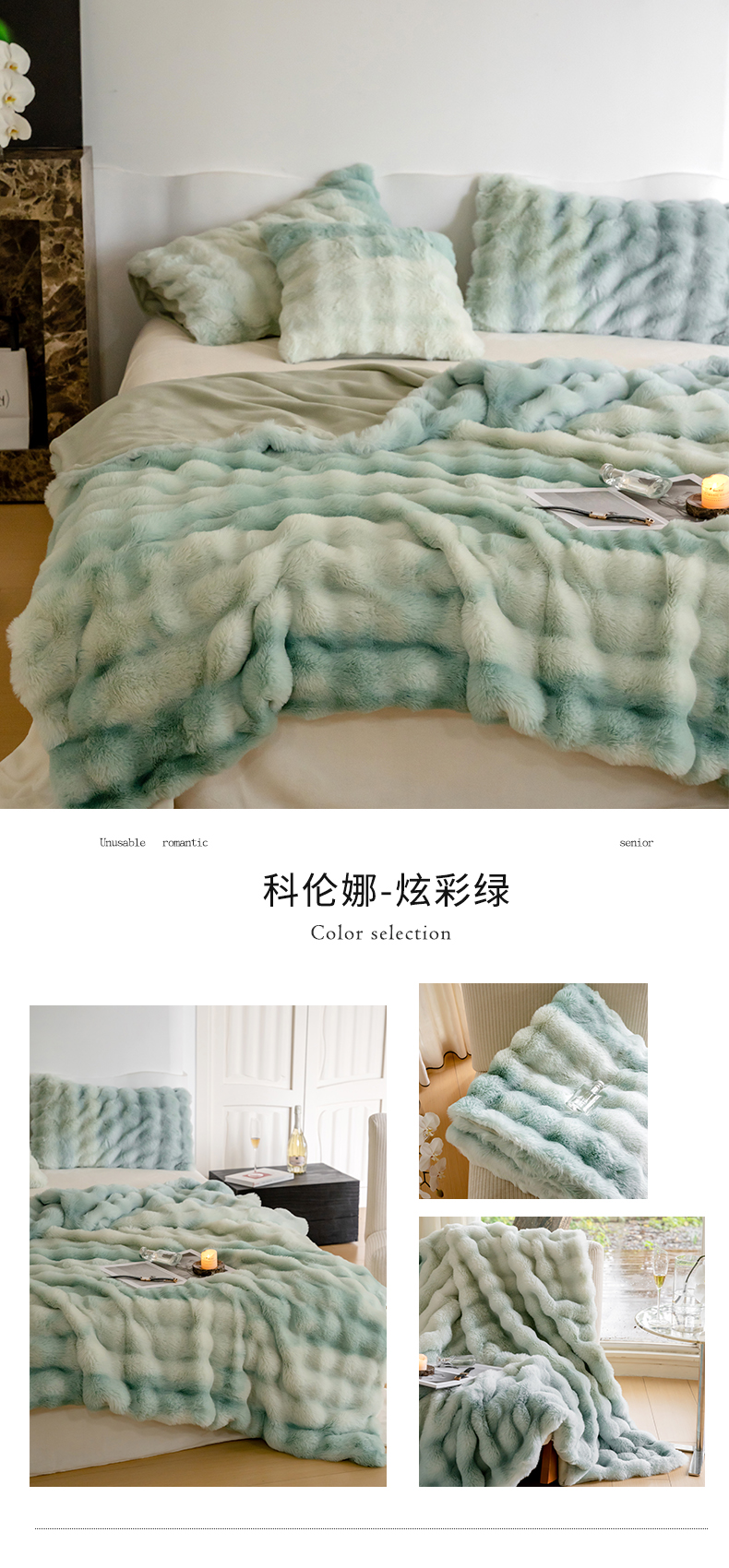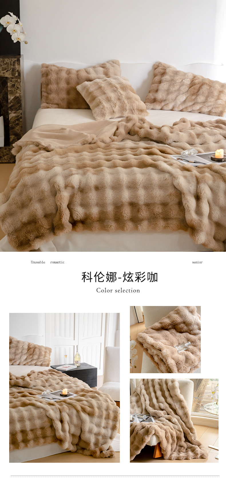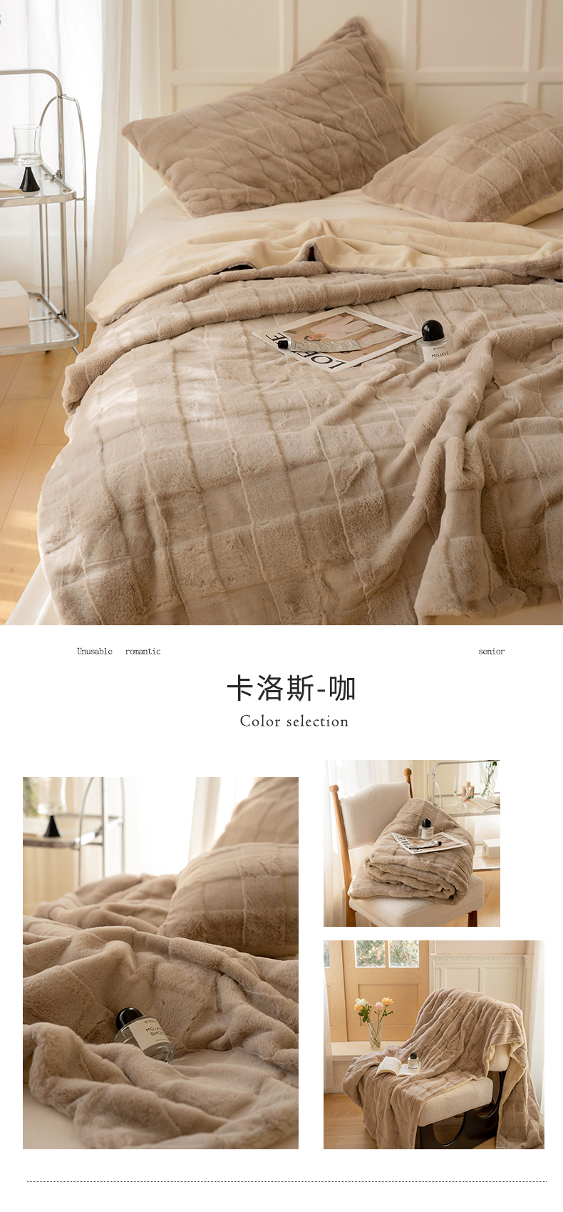 (总)宜代光年 2024新款520g全消光牛奶绒迪奥格盖毯,卡其,米白,柔粉,雾灰