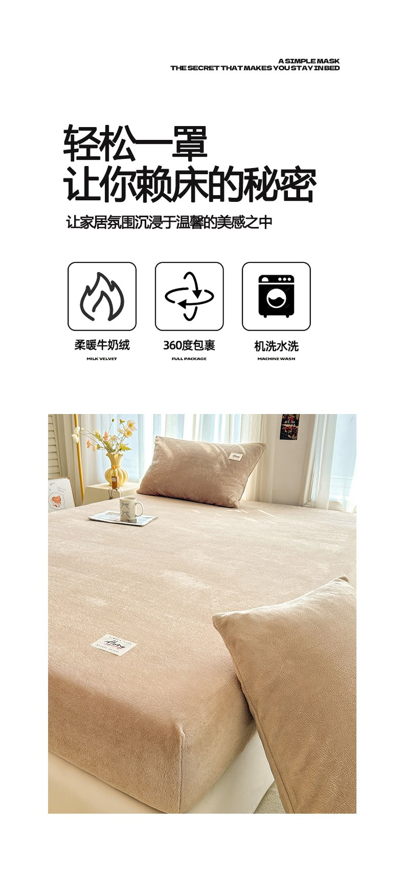 • 91家纺网 家纺一手货源 找家纺 贝扬思家纺 2025新款牛奶绒纯色单床笠-home系列 Home-红格