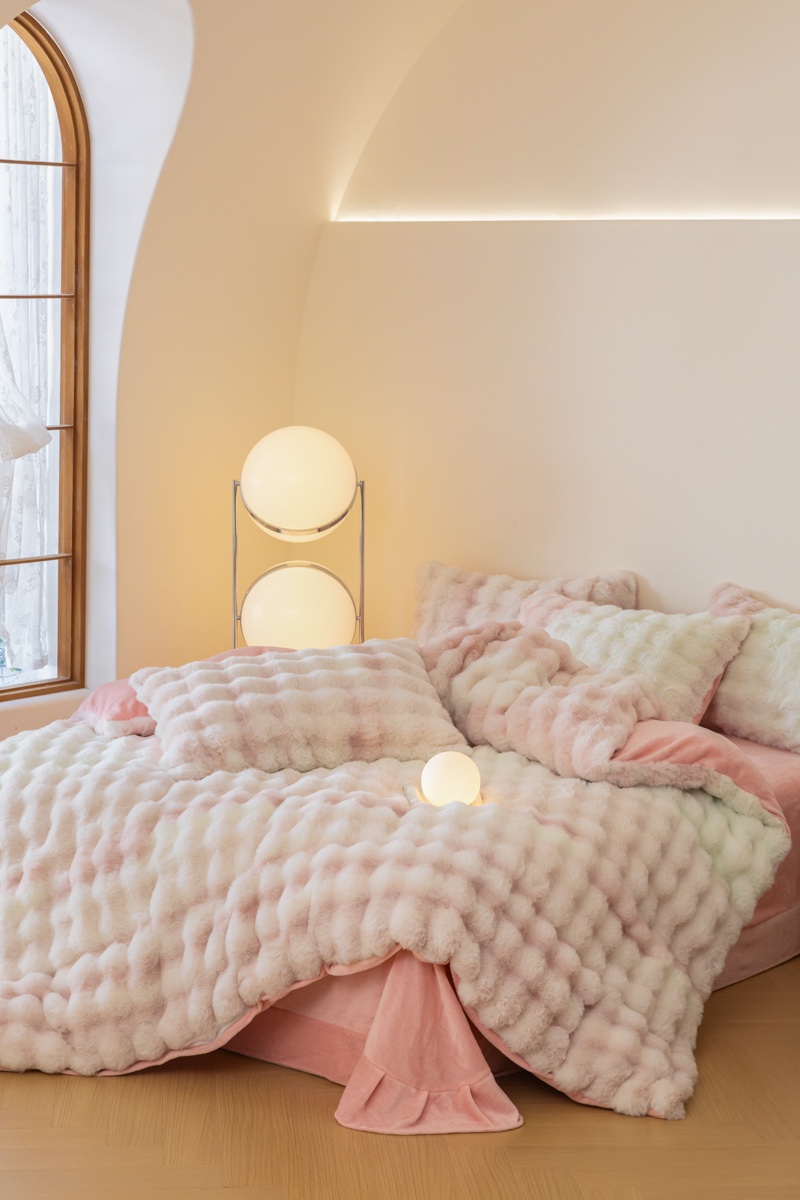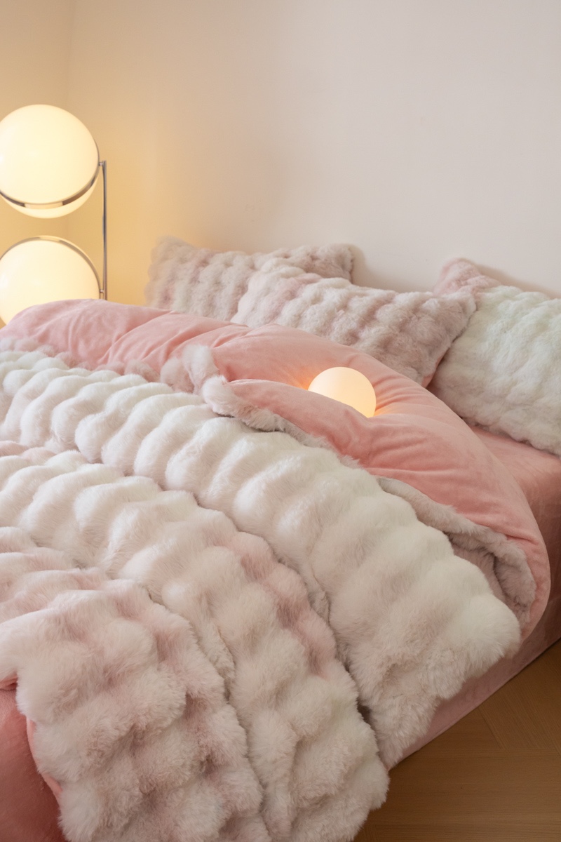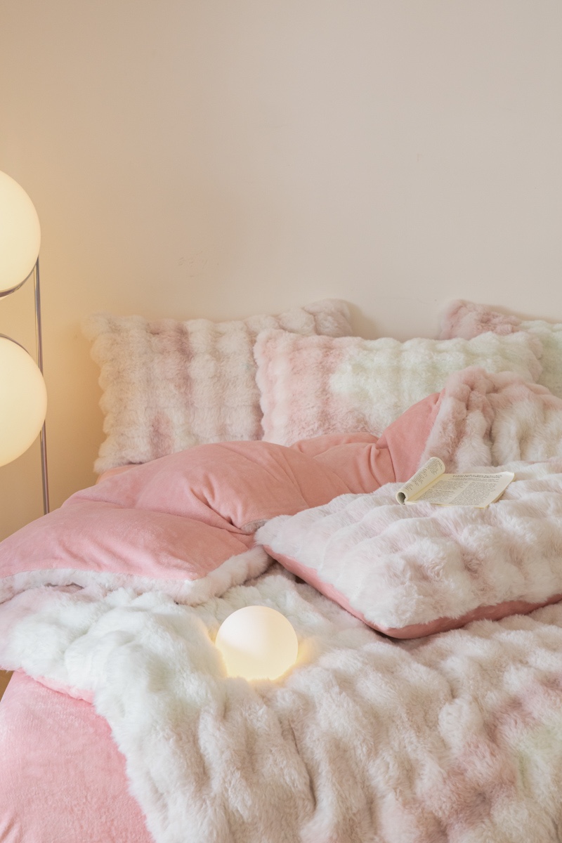 商品名称:玖琳家纺 2025新款托斯卡纳特价兔兔绒兔毛绒四件套 七彩 粉