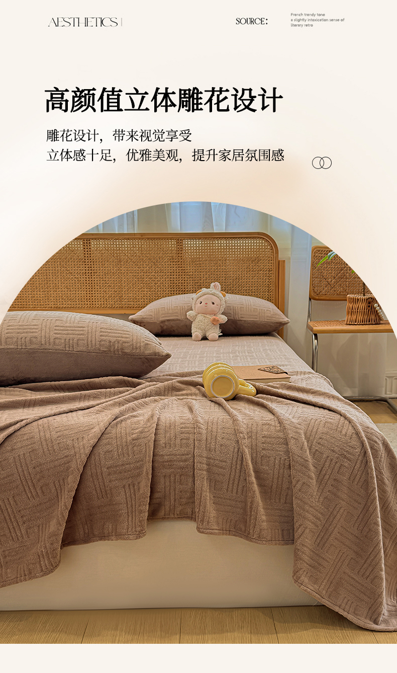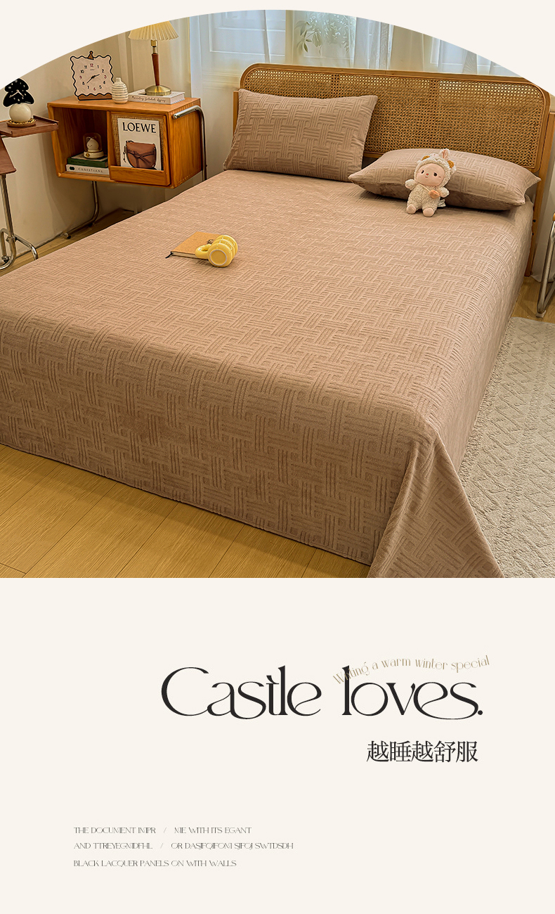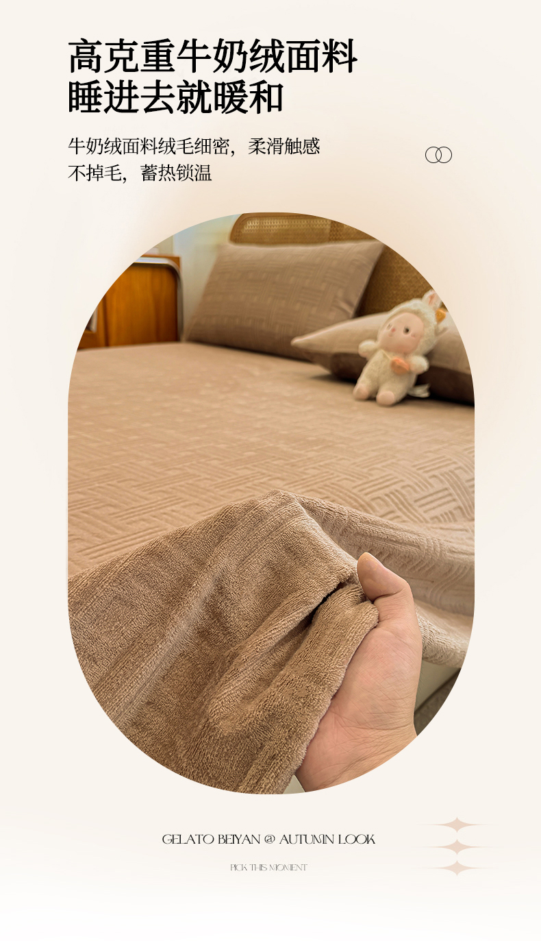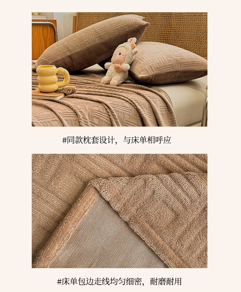 • 91家纺网 家纺一手货源 找家纺 灰鲸 2025新款纯色雕花牛奶绒床单单品床单床单单件 糖果格-摩卡