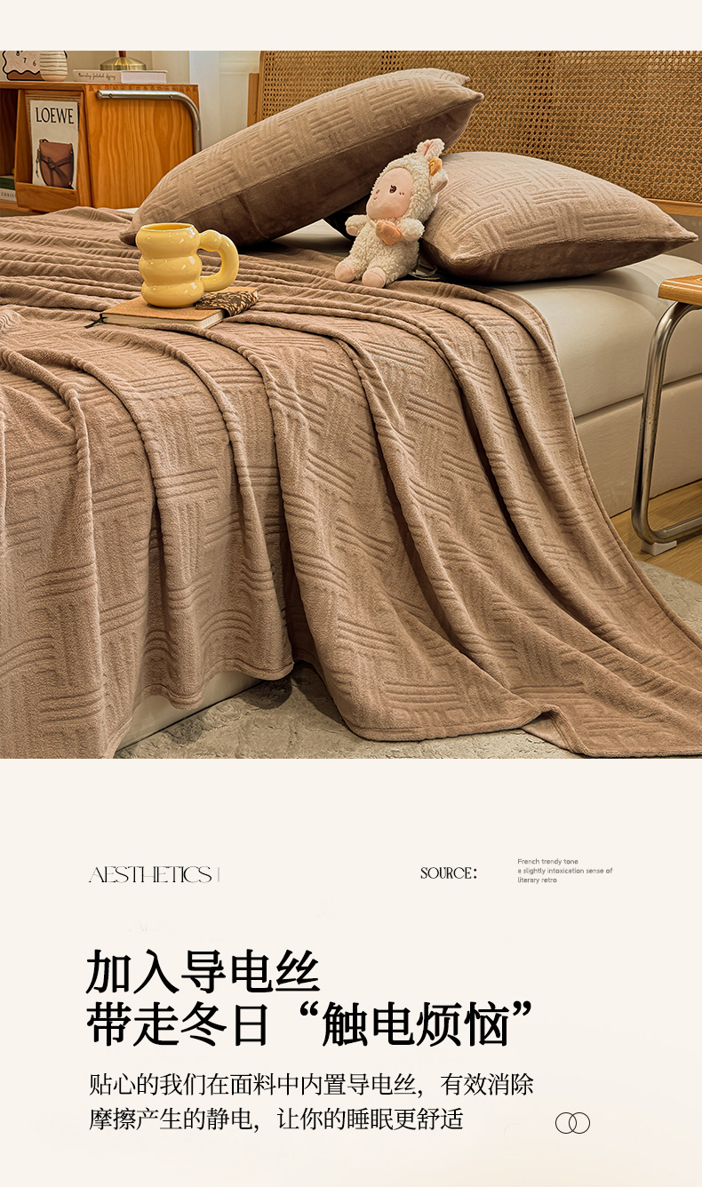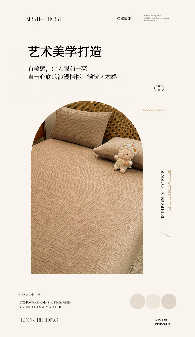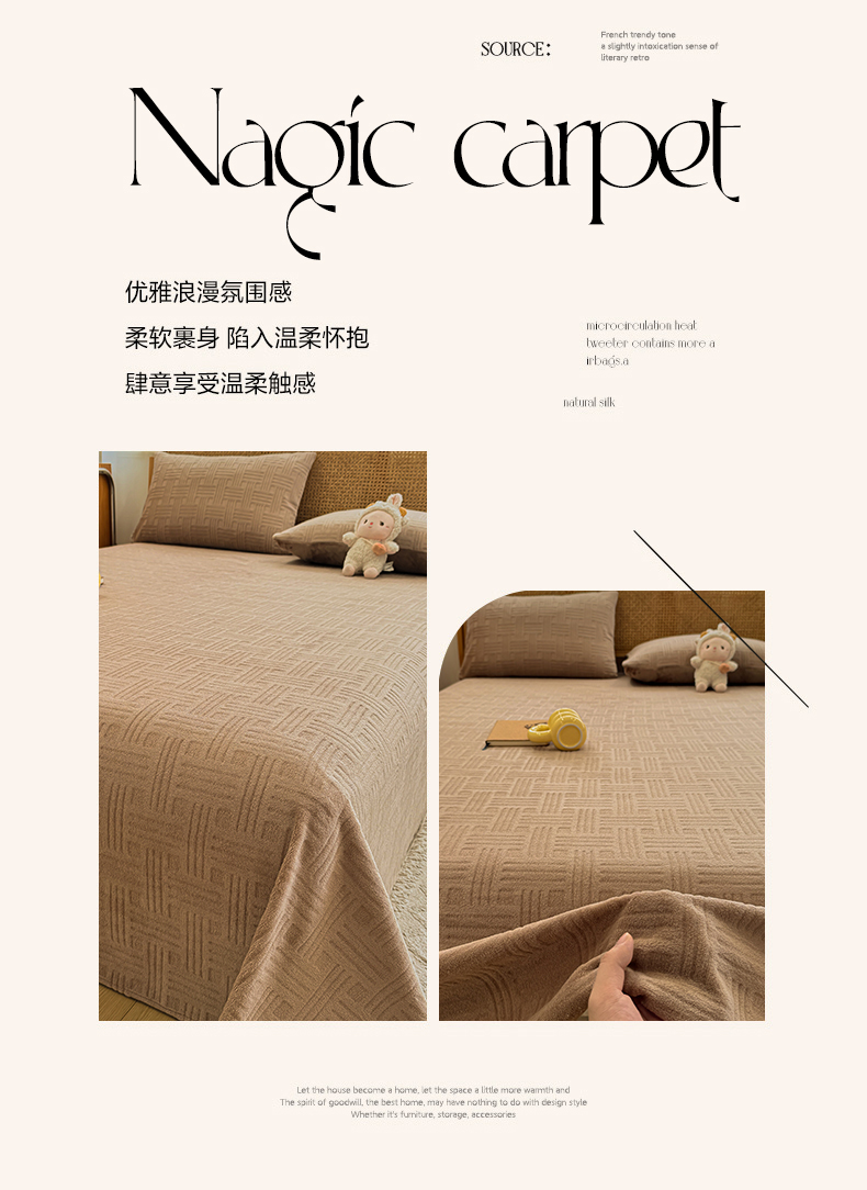 • 91家纺网 家纺一手货源 找家纺 灰鲸 2025新款纯色雕花牛奶绒床单单品床单床单单件 糖果格-摩卡