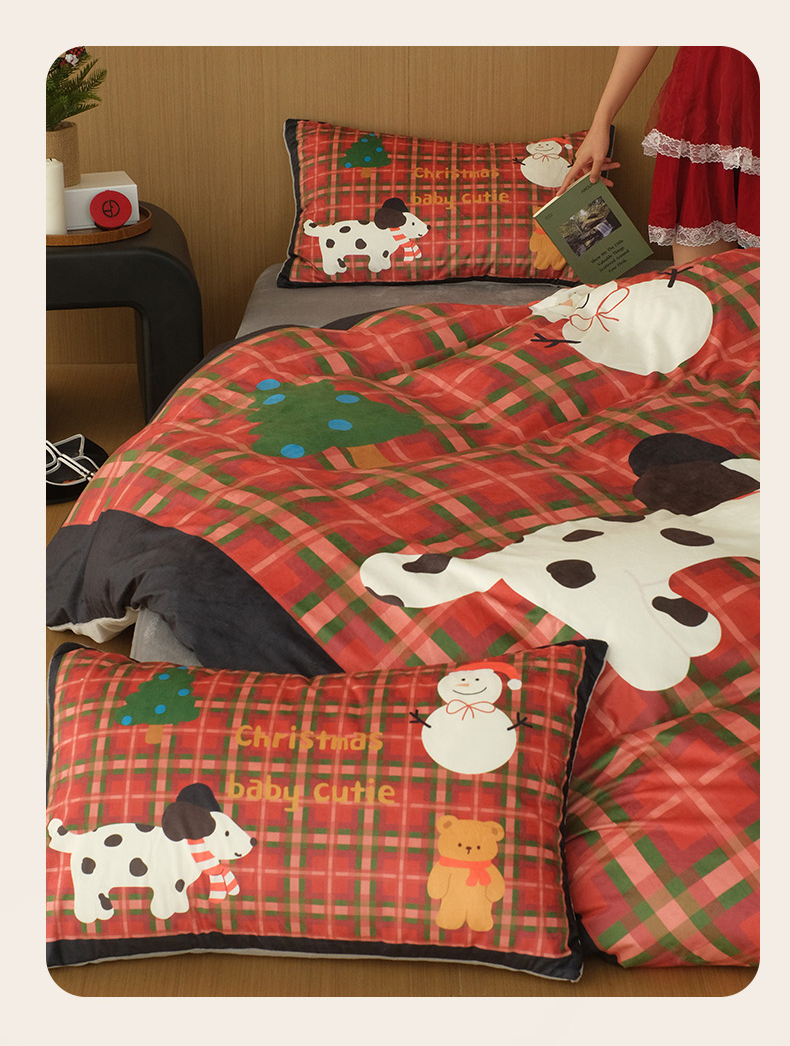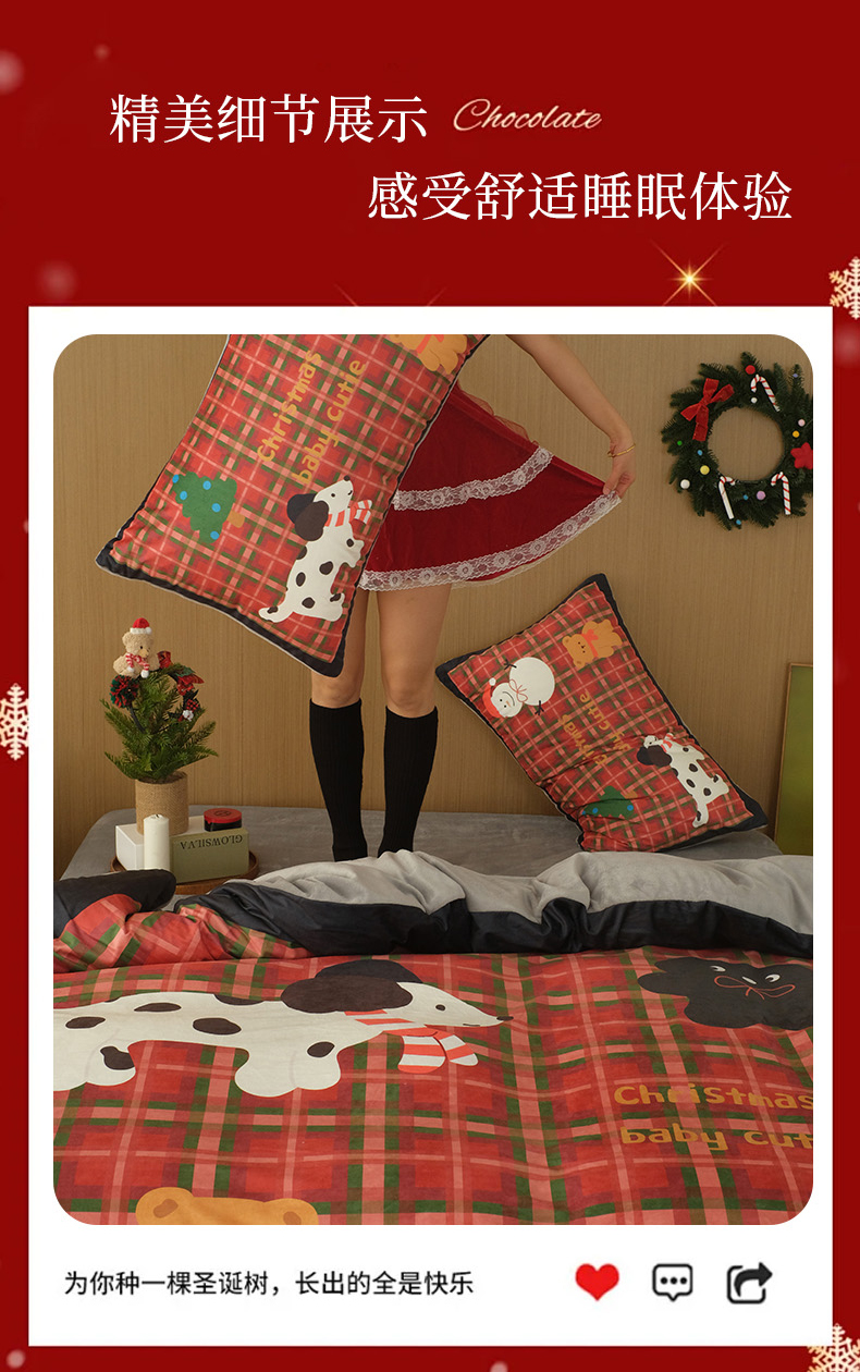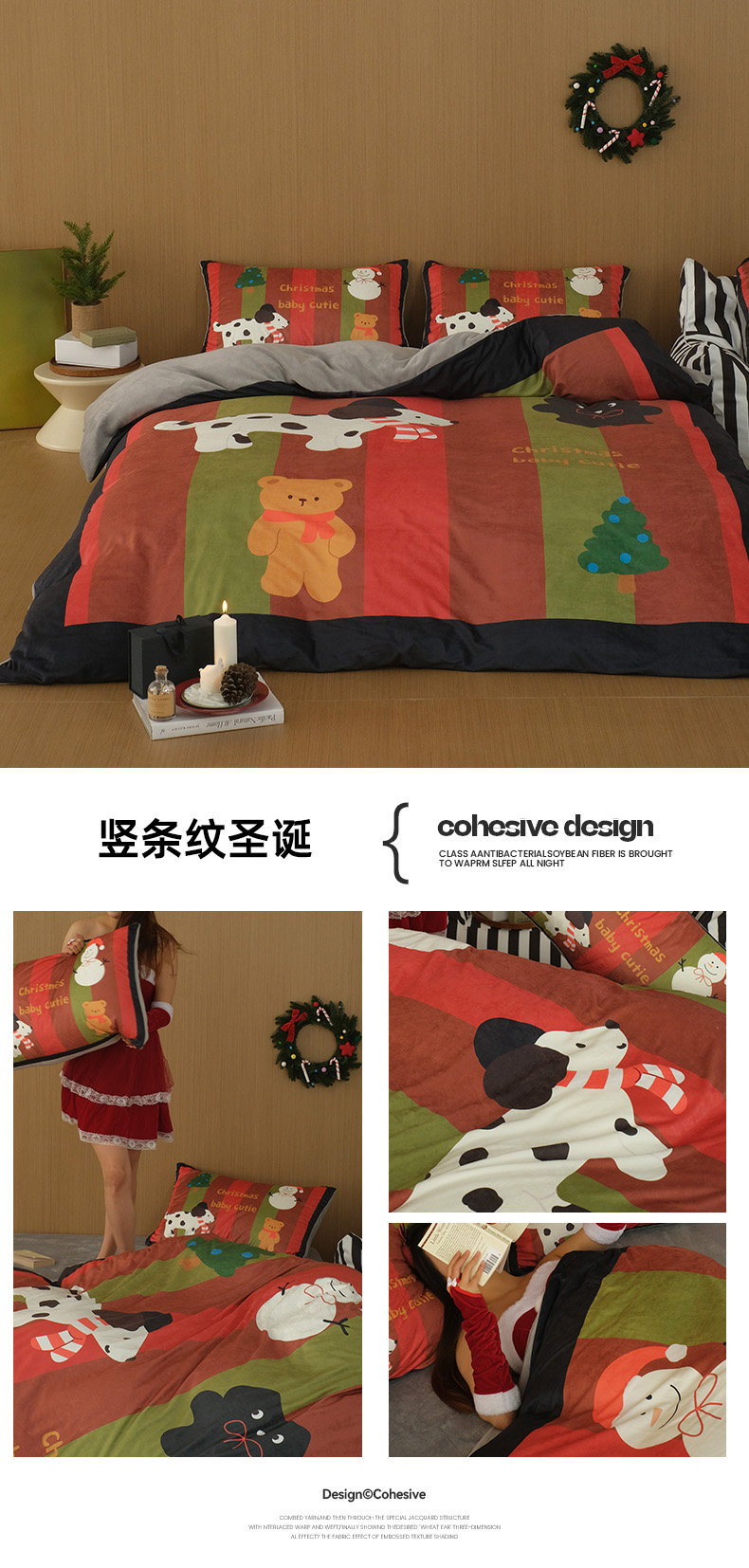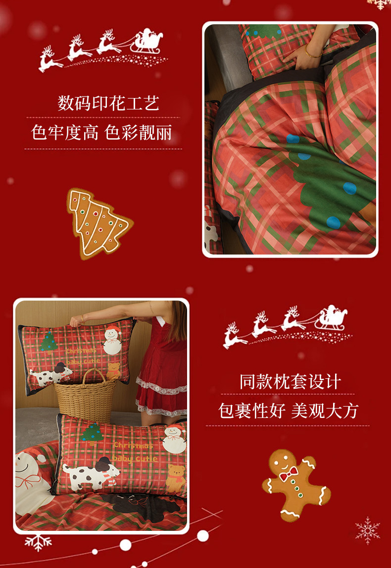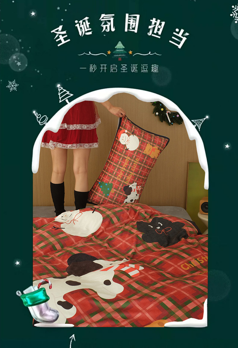 (总)花沐家居 2025新款圣诞款牛奶绒四件套
