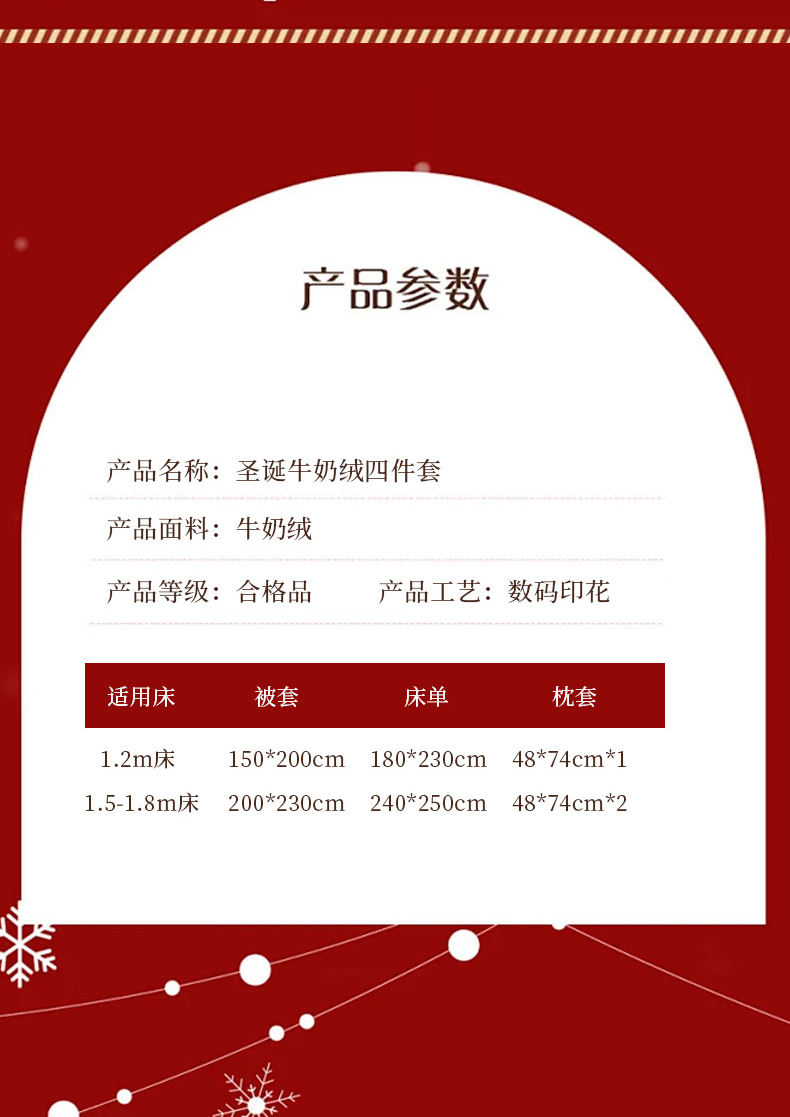 商品名称:(总)花沐家居 2025新款圣诞款牛奶绒四件套