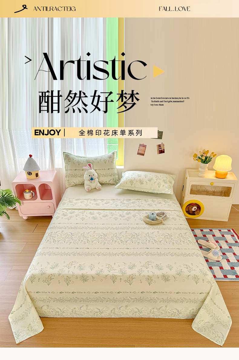 (总)尚帛 2026新款全棉时尚印花单床单,艾米丽-绿,宠爱,花间采趣-咖,可可甜心,可颂日记,浅影,如玉如兰,碎花学院,五星集,叶柔粉,叶之恋