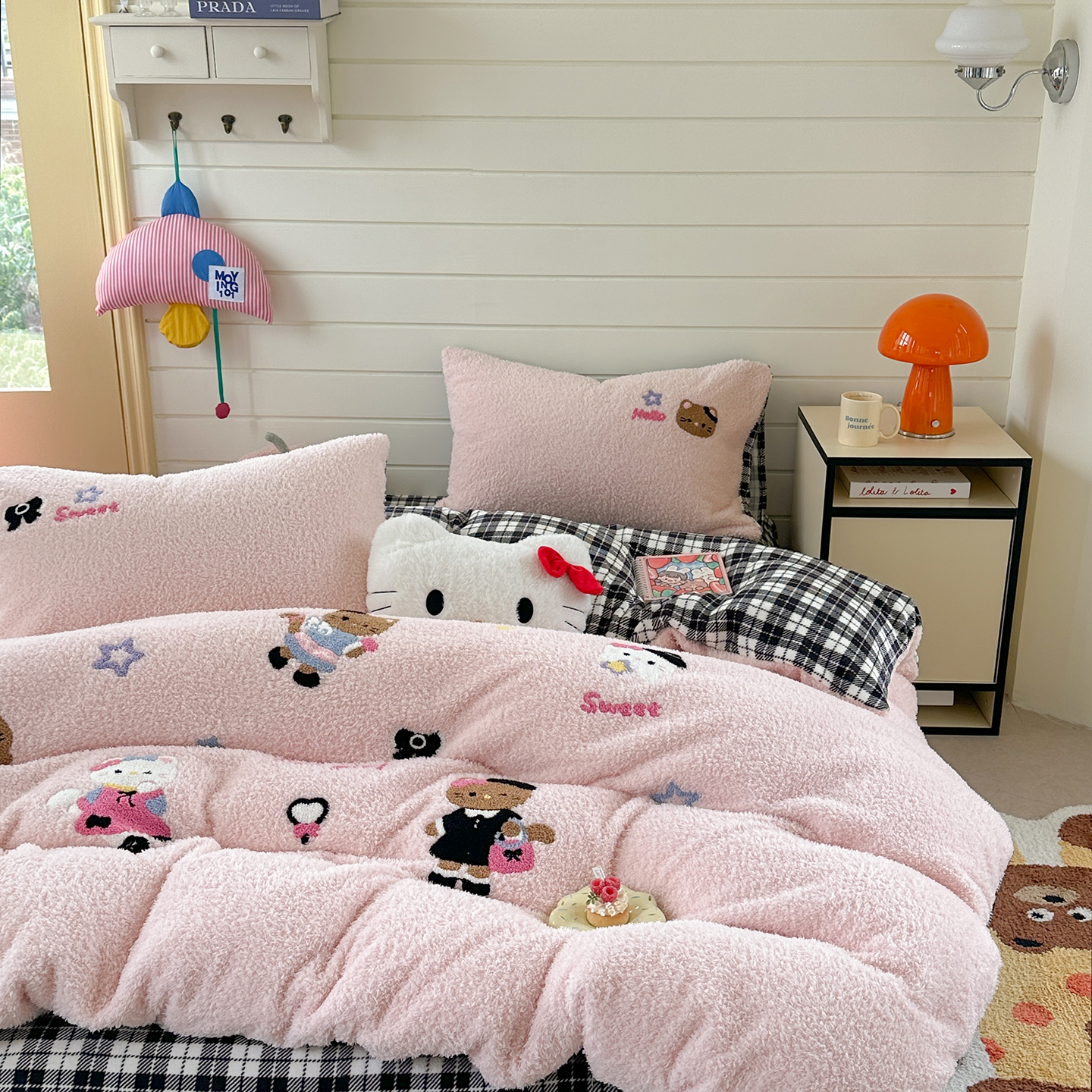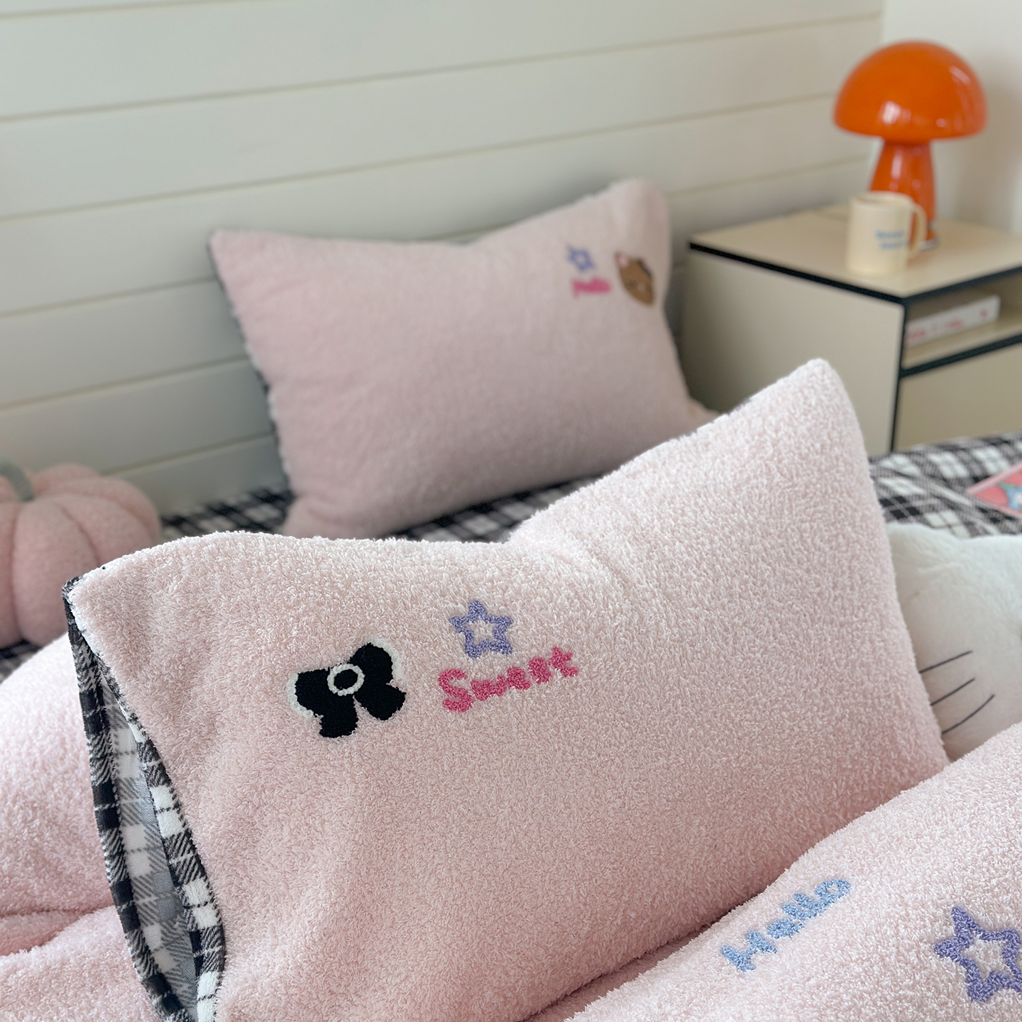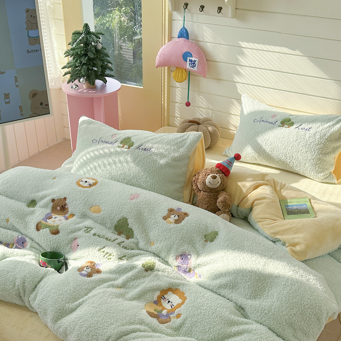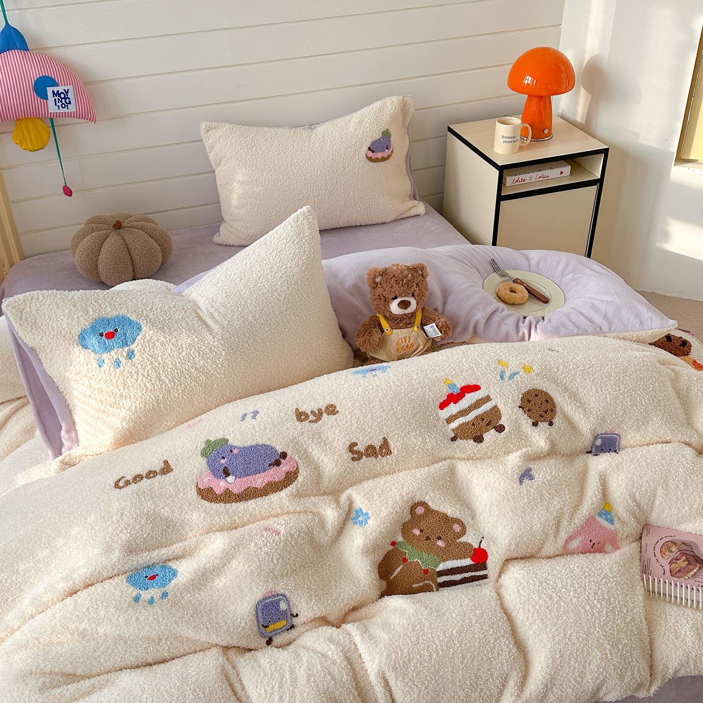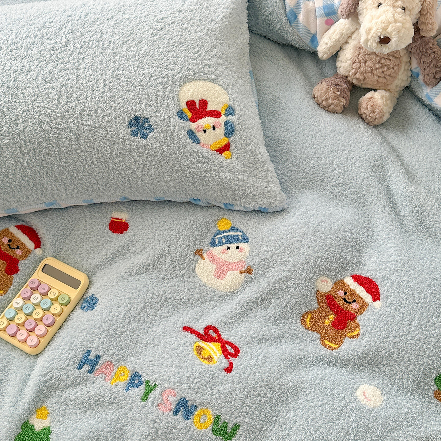 (总)柚子YOUTH 2025新款双面泰迪绒毛巾绣四件套,甜甜圈,快乐企鹅,森林聚会,甜酷KT,小茄子,雪人王国