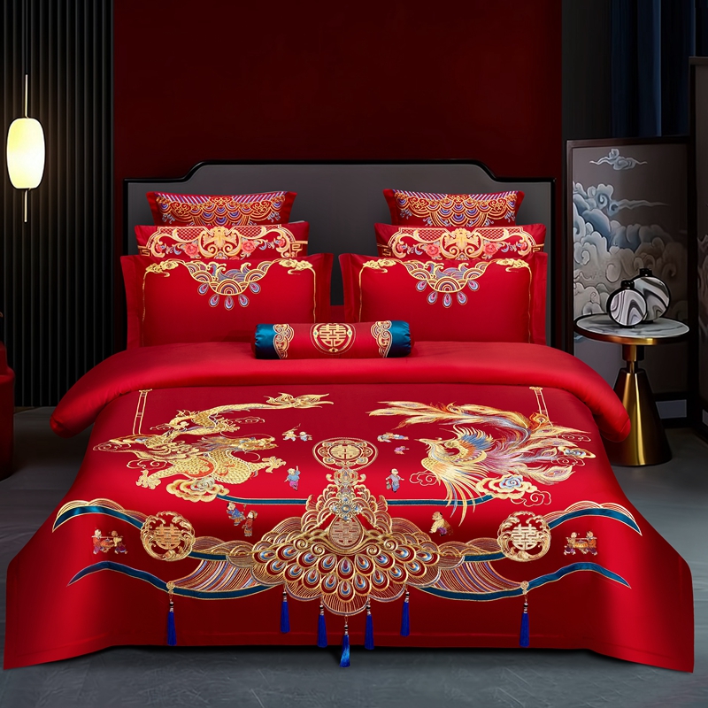 (总)布乐意 2025新款磨毛婚庆刺绣四件套六件套,百年永好,美满婚姻,千禧姻缘,天生一对,喜结良缘,喜上加喜,龙凤双美,吉祥如意,山盟海誓,龙凤呈祥,龙腾凤舞,情投意合,永结同心,龙凤爱恋,吉祥龙凤
