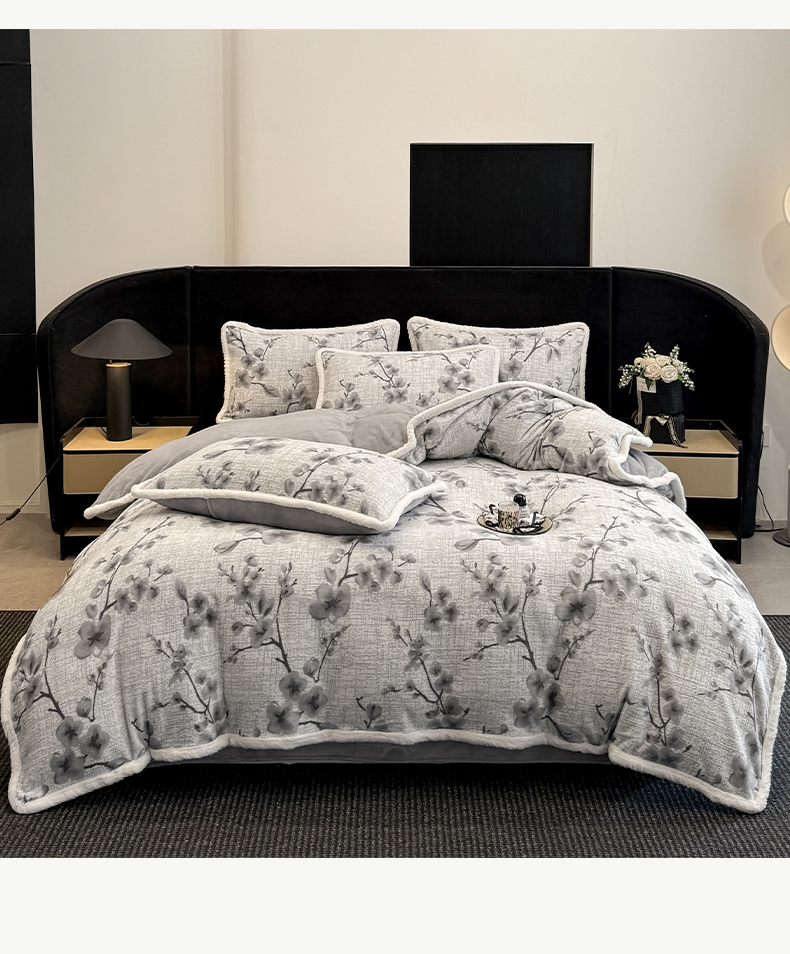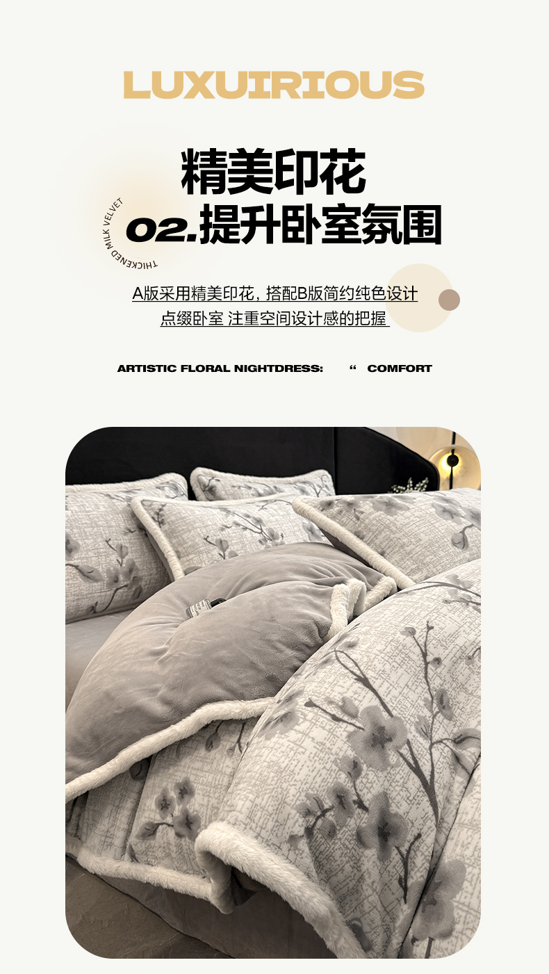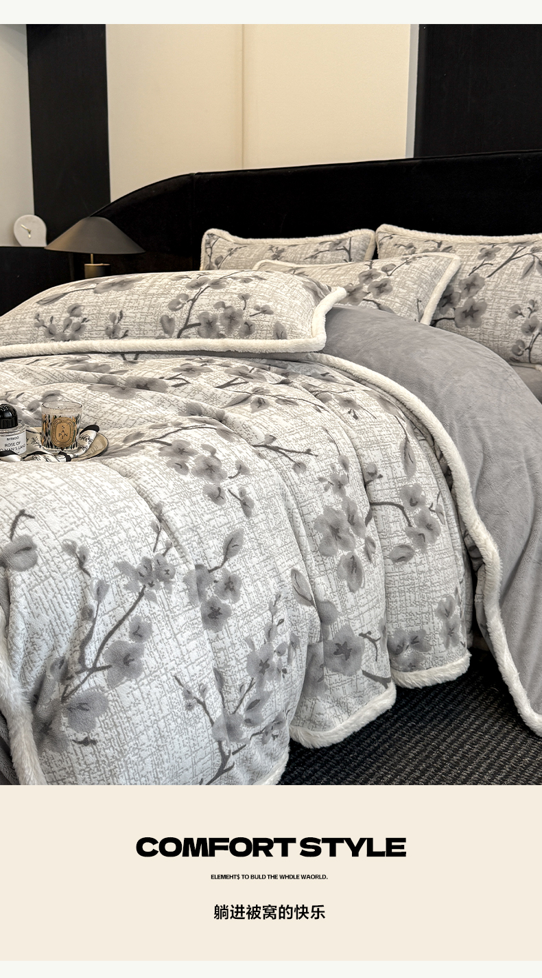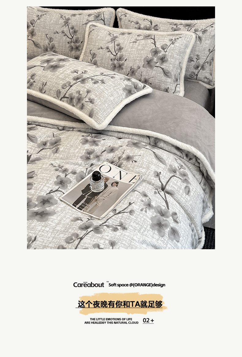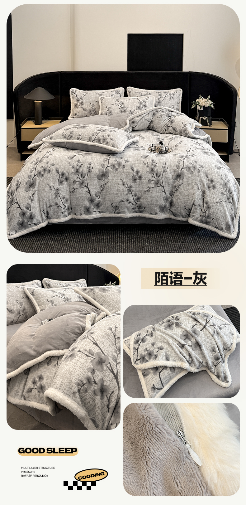 商品名称:如一 2025新款立体雕花牛奶绒兔毛包边四件套 陌语-灰