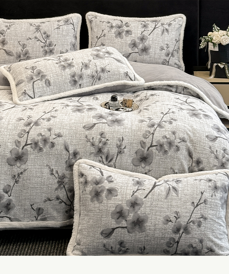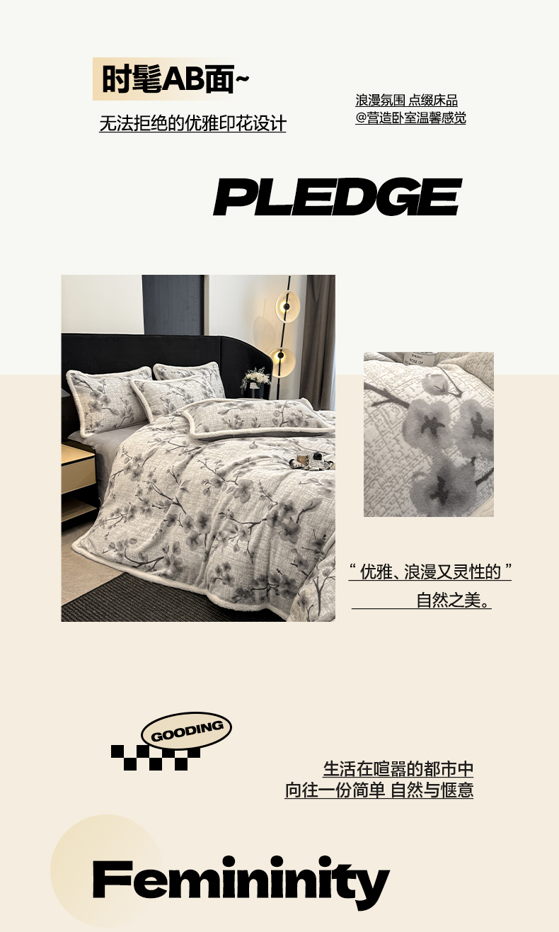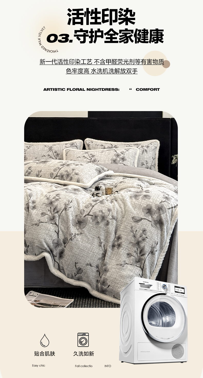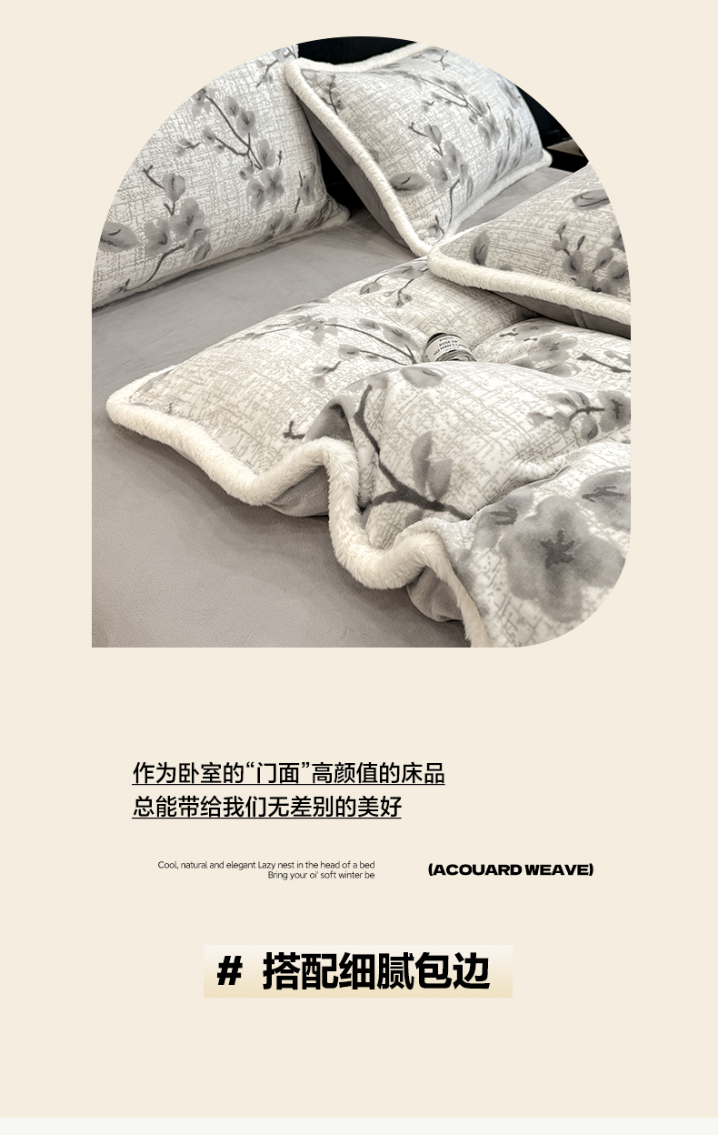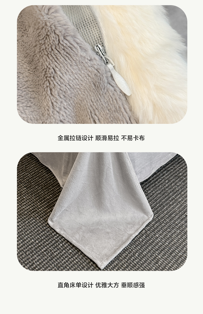 商品名称:如一 2025新款立体雕花牛奶绒兔毛包边四件套 陌语-灰