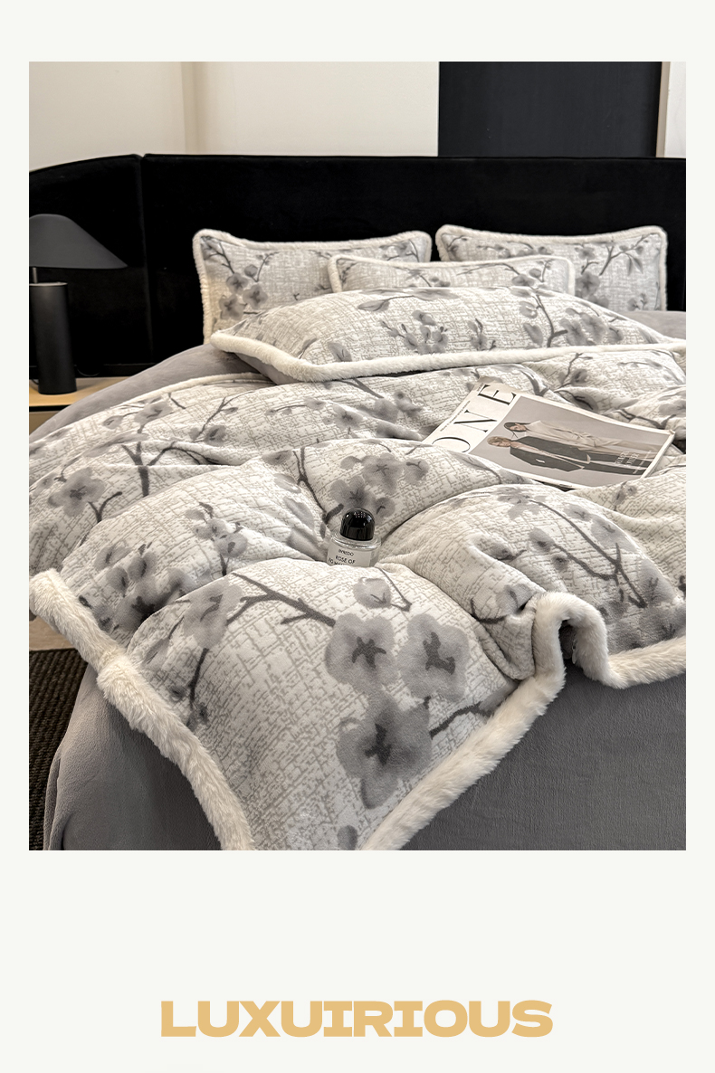 如一 2025新款立体雕花牛奶绒兔毛包边四件套 陌语-灰
