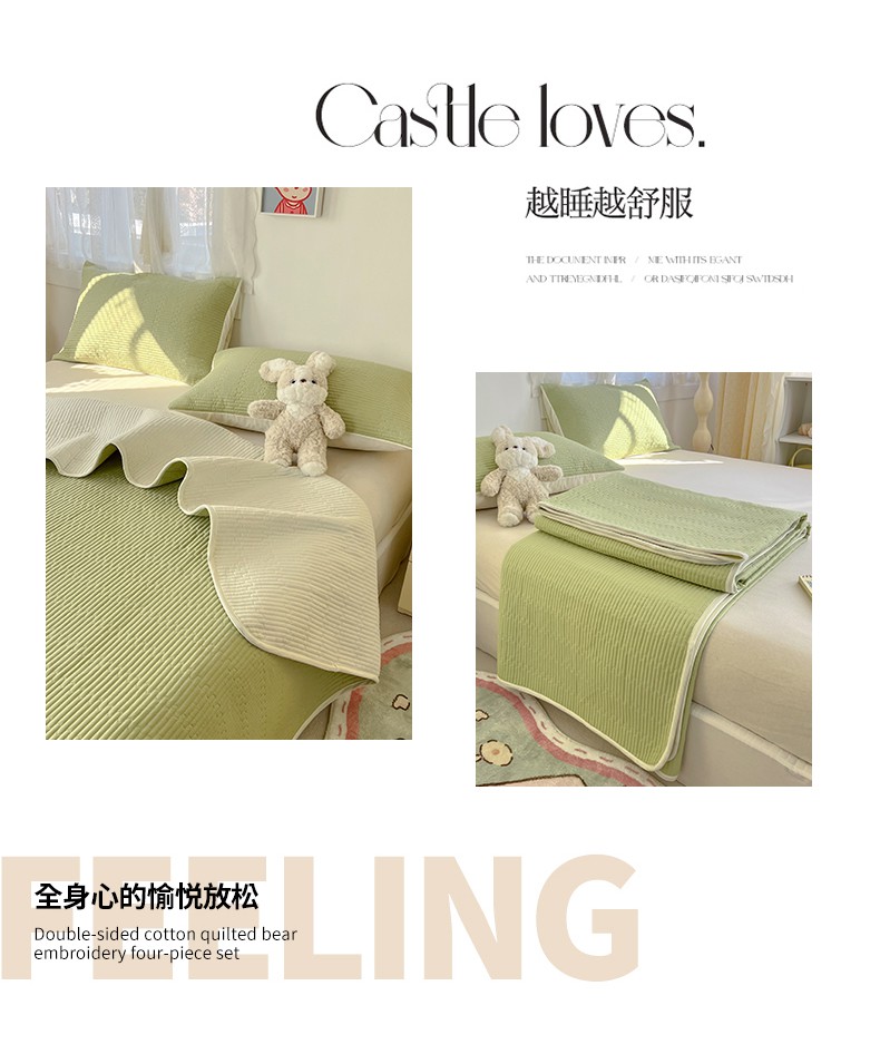 • 91家纺网 家纺一手货源 找家纺 (总)妮可 2025新款荷叶边纯棉绗缝四季款多功能床盖,奶油黄,冰湖蓝,豆豆沙,梦幻粉,气质灰,森林绿,芝兰紫