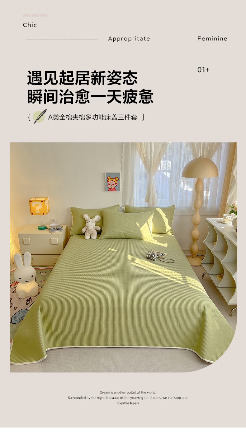当前位置: 91家纺网 > 商品网购 > 床上用品 > 床盖 > 妮可 2025新款热款花型印花全棉夹棉多功能床垫-床盖 发芽绿