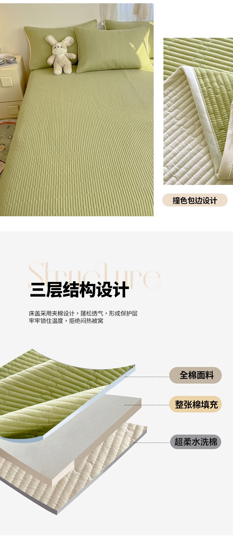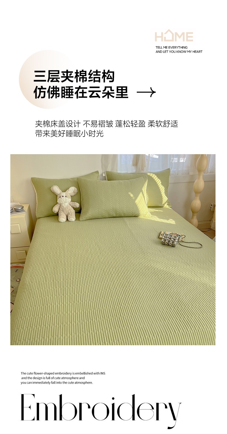• 91家纺网 家纺一手货源 找家纺 妮可 2025新款热款花型印花全棉夹棉多功能床垫-床盖 发芽绿