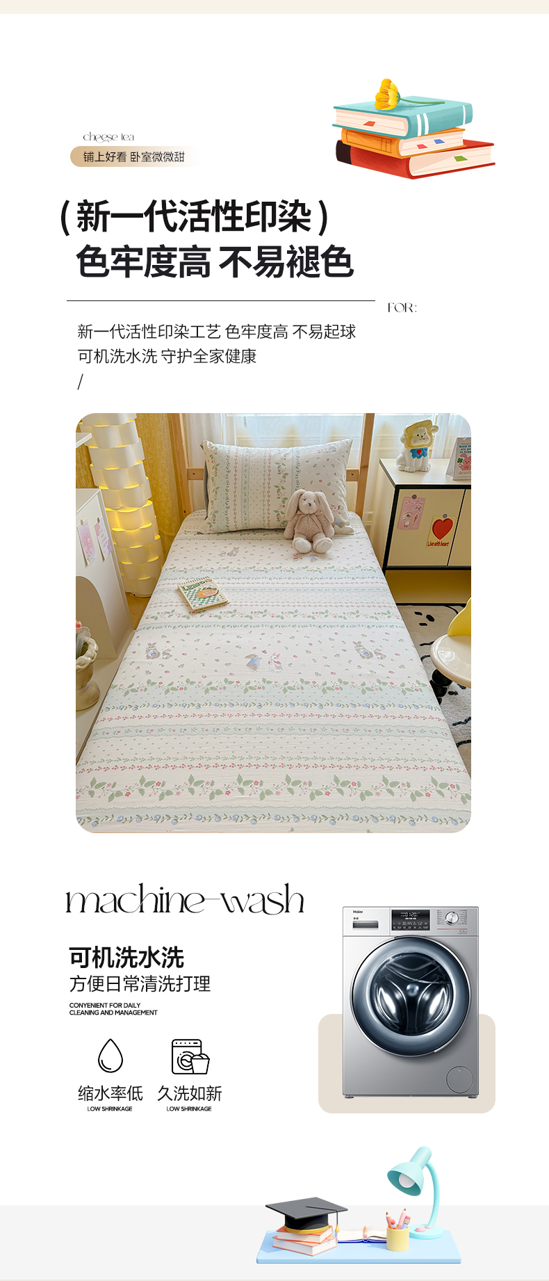 商品名称:妮可 2025热款花型全包床垫套褥子套(AB双版A全棉B绒) 草莓小兔