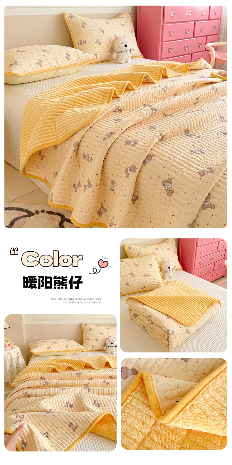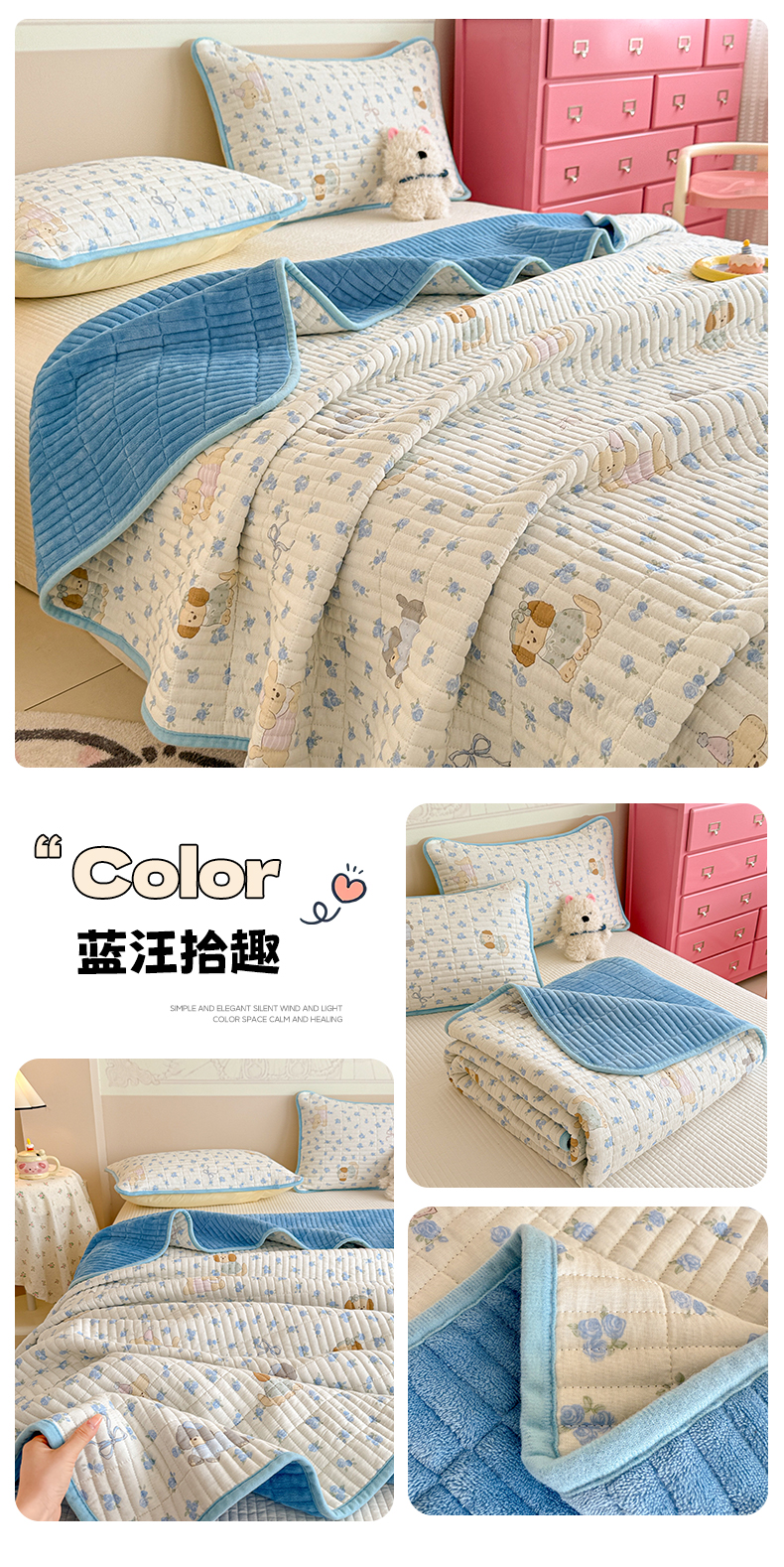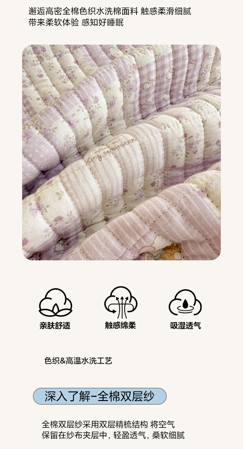 (总)妮可 2025新款跑量款全棉双层纱绒四季可用床盖系列,元气萌宠,花园兔宝,蓝汪拾趣,暖阳熊仔,甜梦凯蒂,甜心乐园,芋泥奶霜,组合图(仅参考)