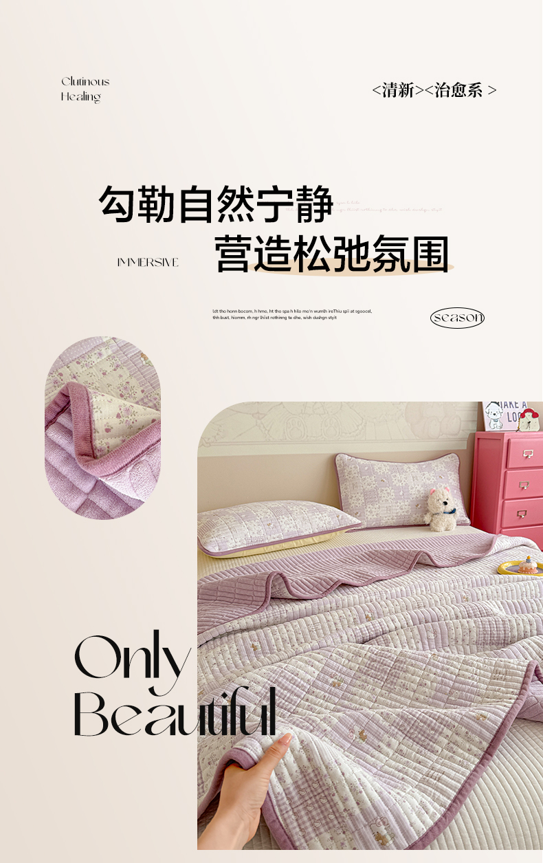 当前位置: 91家纺网 > 商品网购 > 床上用品 > 床盖 > 妮可 2025新款跑量款全棉双层纱绒四季可用床盖系列 芋泥奶霜
