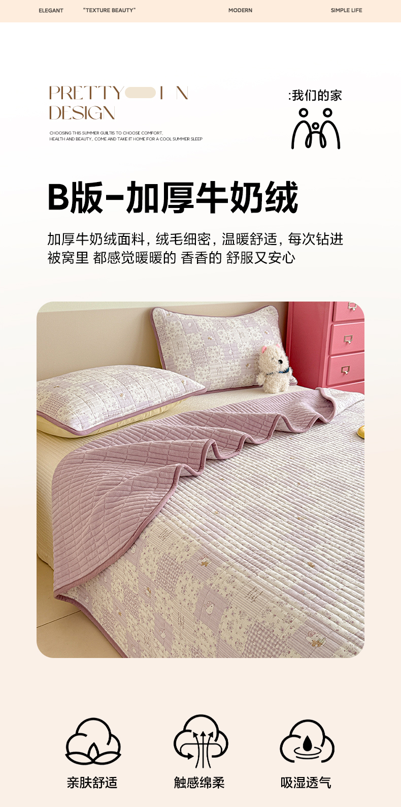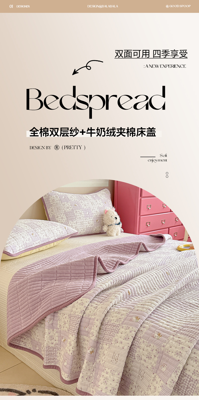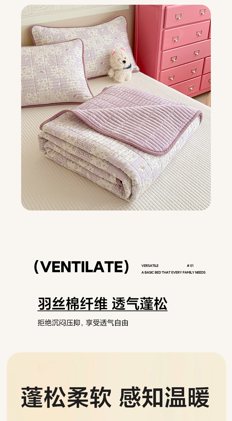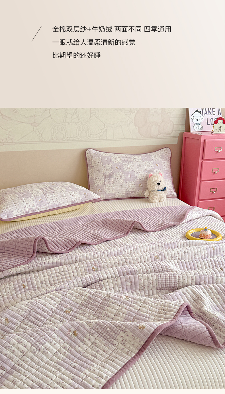 • 91家纺网 家纺一手货源 找家纺 妮可 2025新款跑量款全棉双层纱绒四季可用床盖系列 芋泥奶霜