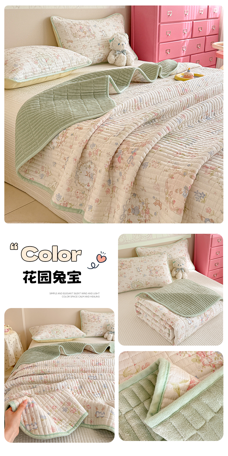 • 91家纺网 家纺一手货源 找家纺 (总)妮可 2025新款荷叶边纯棉绗缝四季款多功能床盖,奶油黄,冰湖蓝,豆豆沙,梦幻粉,气质灰,森林绿,芝兰紫