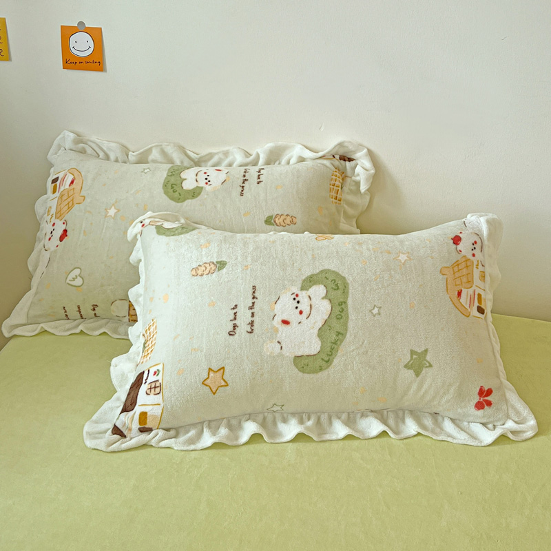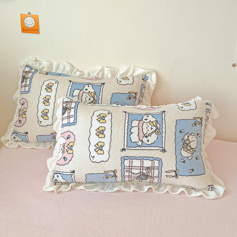 商品名称:眷恋家纺 2025新款高克重牛奶绒花边枕套枕头套 动物家园