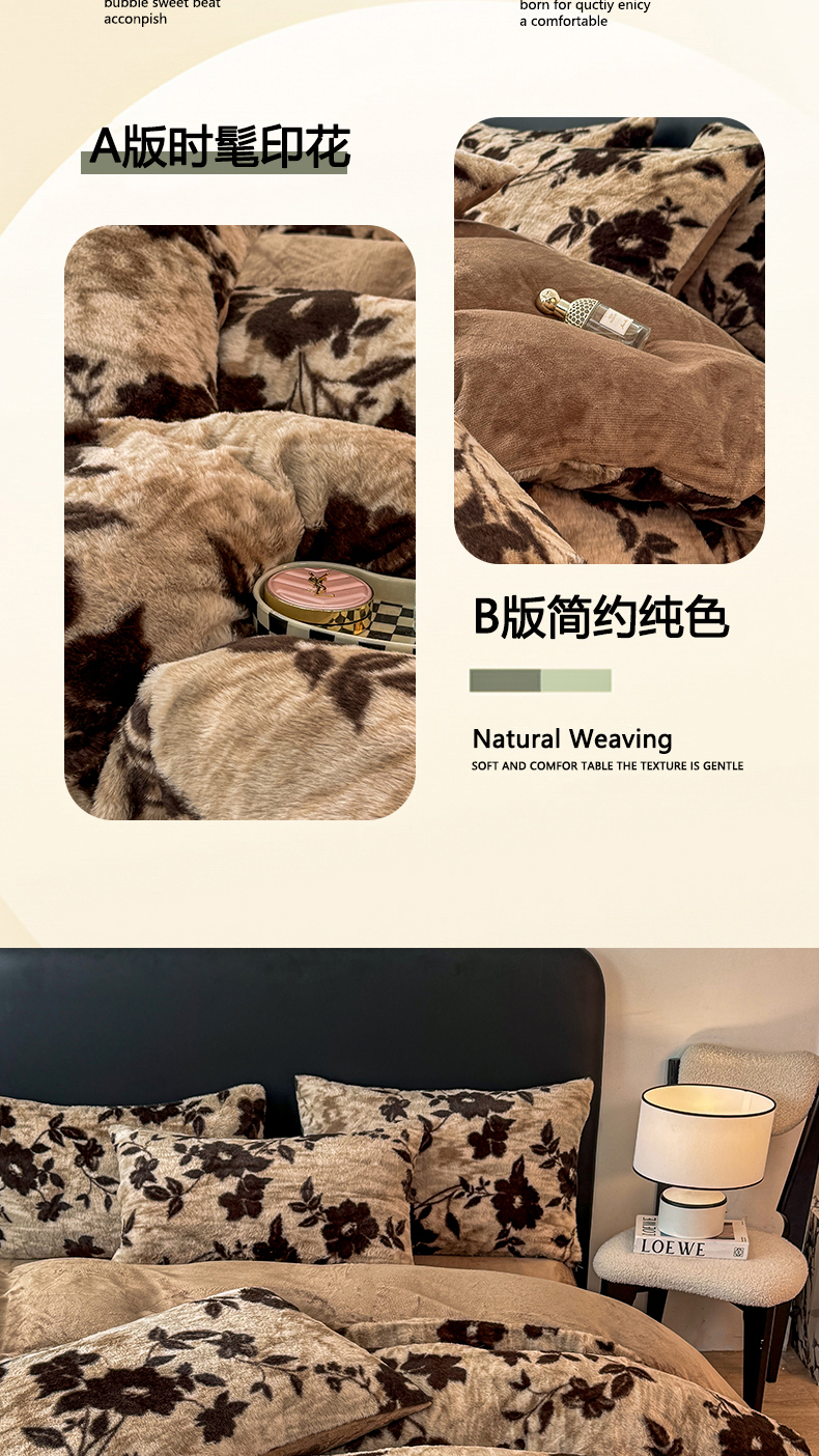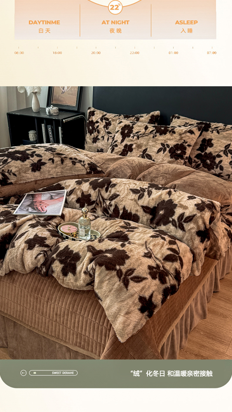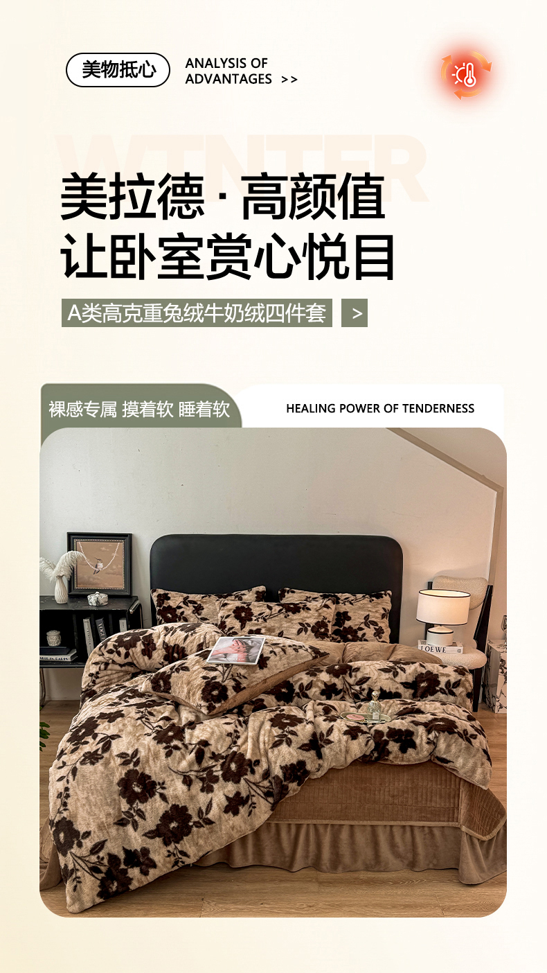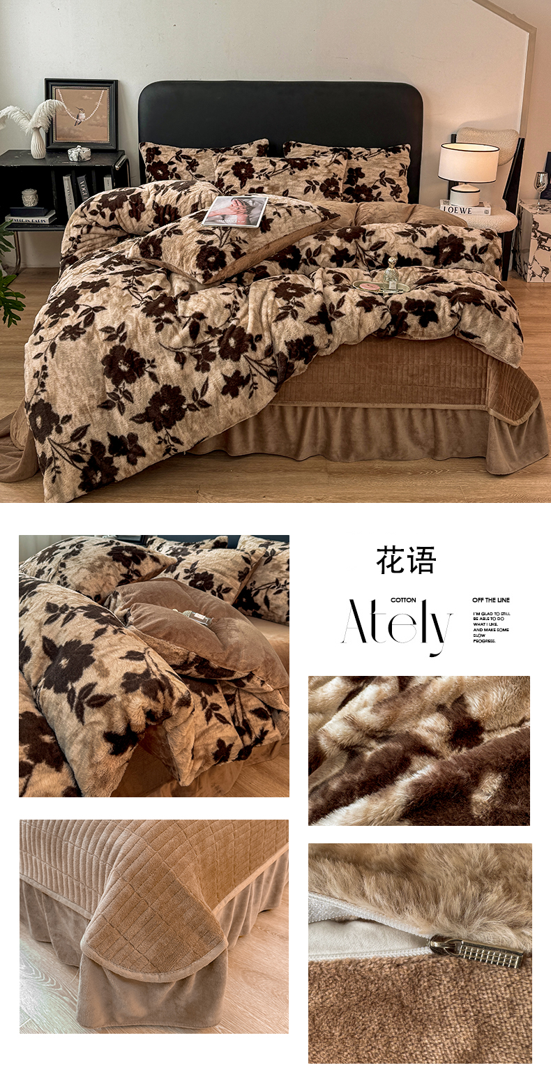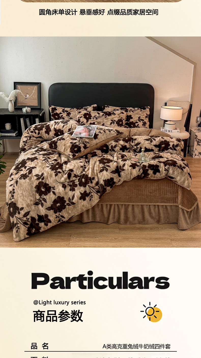 当前位置: 91家纺网 > 商品网购 > 床品套件 > 四件套 > 牛奶绒四件套 > 乐窝家纺仓储 2025新款【8斤重】轻奢复古美拉德兔兔绒牛奶绒床单床笠床盖款四件套(日发50套优惠8元一套) 花语