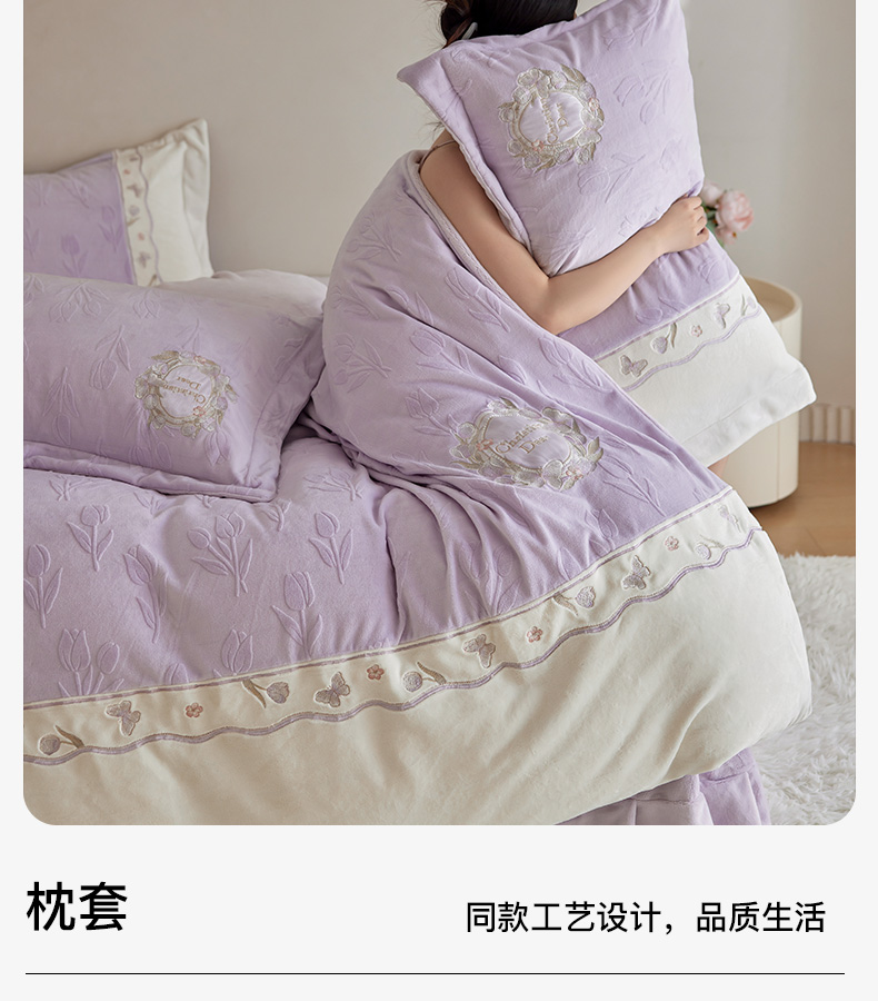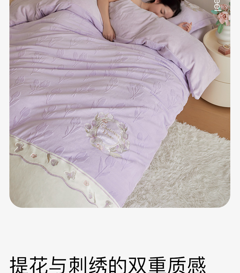 商品名称:卡姿家纺 2025秋冬 德国奶芙绒提花刺绣—安德莉雅 安德莉雅-紫