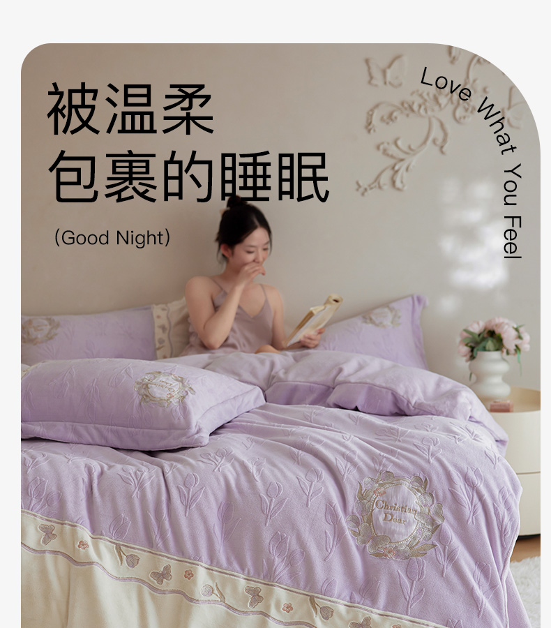 (总)卡姿家纺 2025秋冬小兔毛轻奢感名媛风— 维多莉,维多莉-帛紫,维多莉奶昔白,维多莉杏仁粉